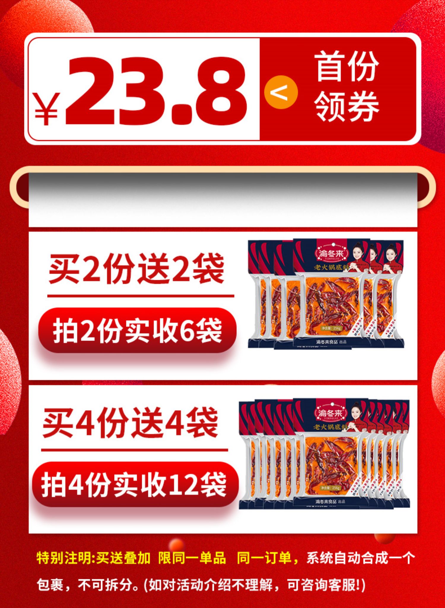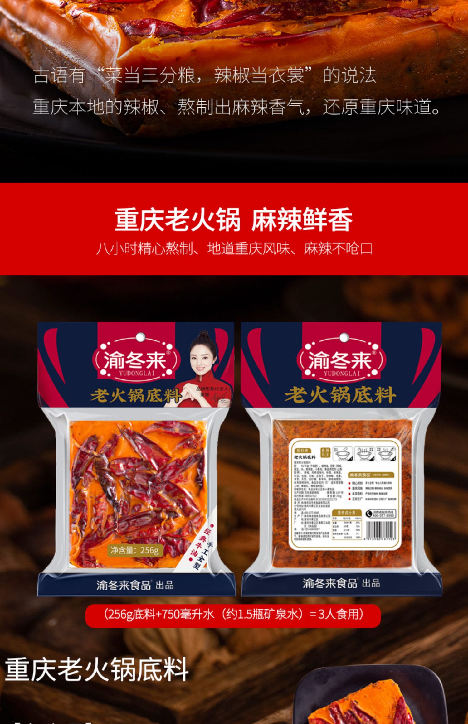 • 商品名称:渝冬来正宗重庆牛油老火锅底料四川超麻辣烫家用火锅商用香锅调料