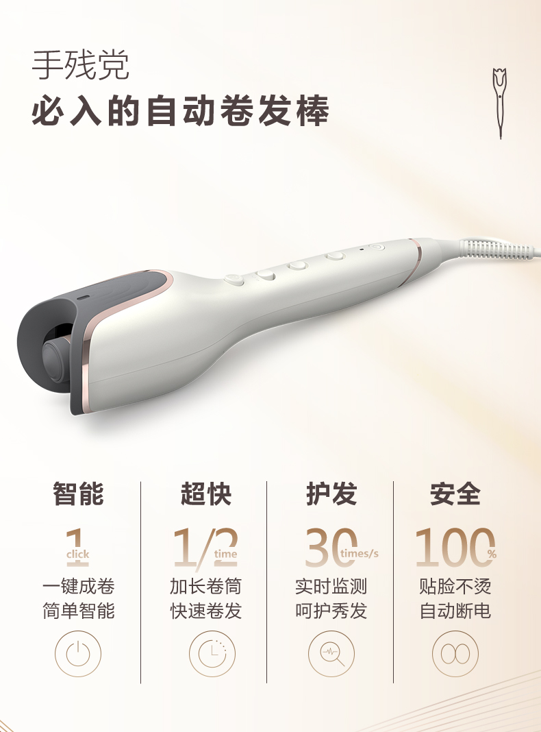 • 商品名称:飞利浦自动卷发棒蛋蛋卷头大卷小型不伤发持久定型卷发神器BHB878