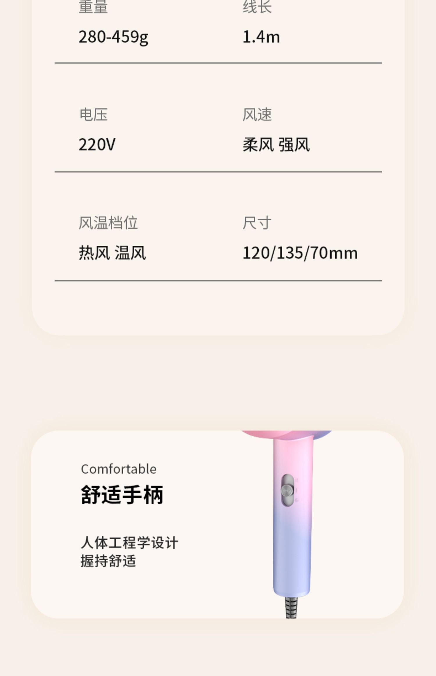 • 商品名称:电吹风机家用负离子护发大功率小型宿舍学生静音女生款800w专用筒