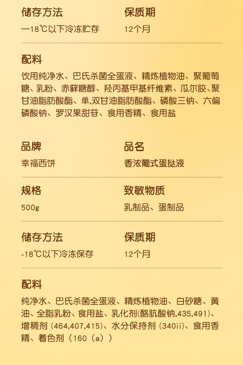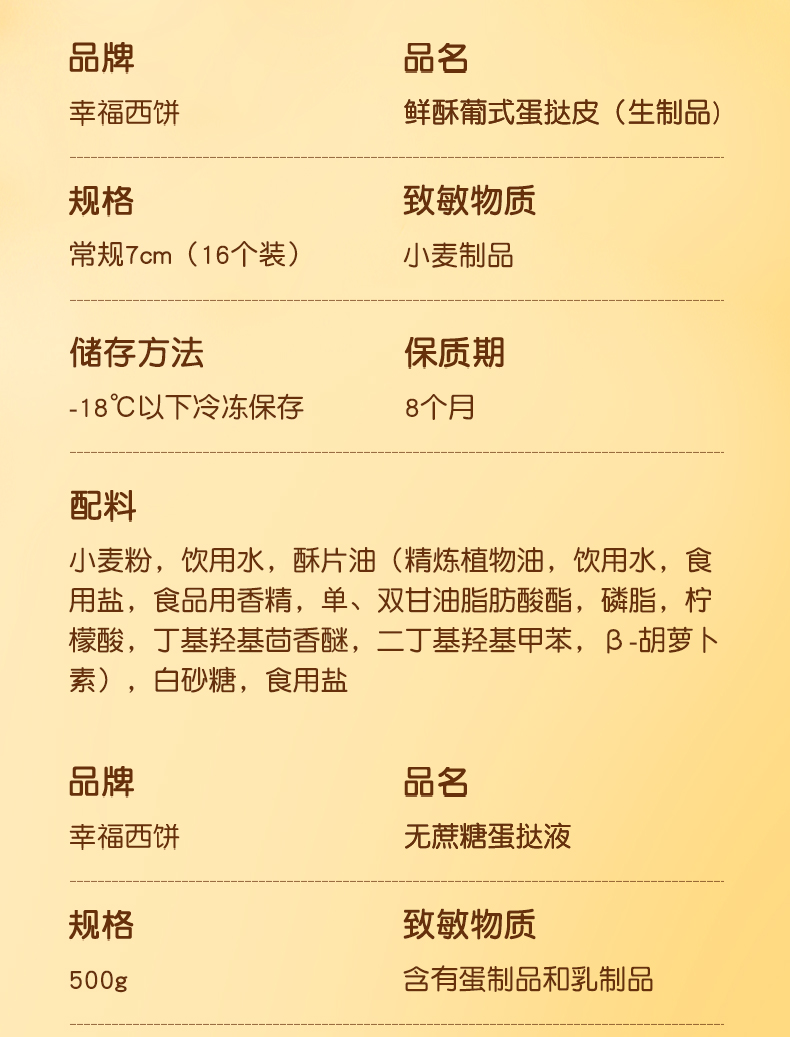 • 商品名称:幸福西饼蛋挞皮蛋挞液套餐家用烘焙食材空气炸锅生葡式官方旗舰店
