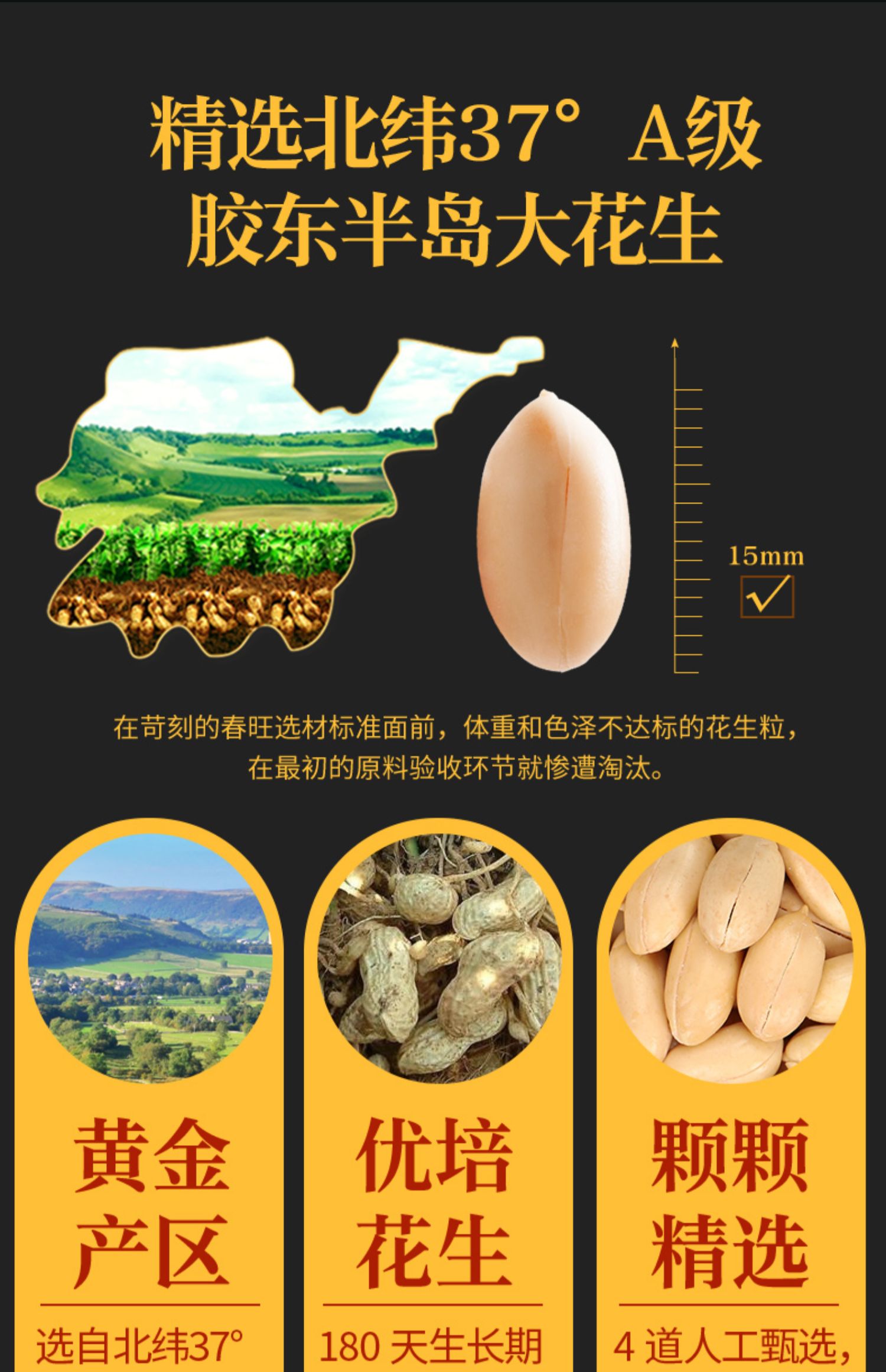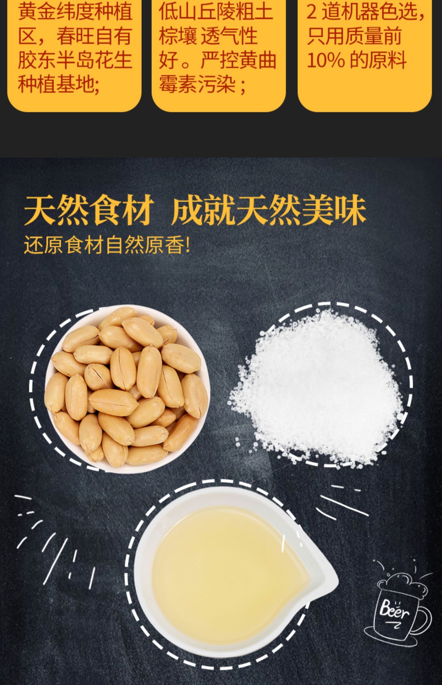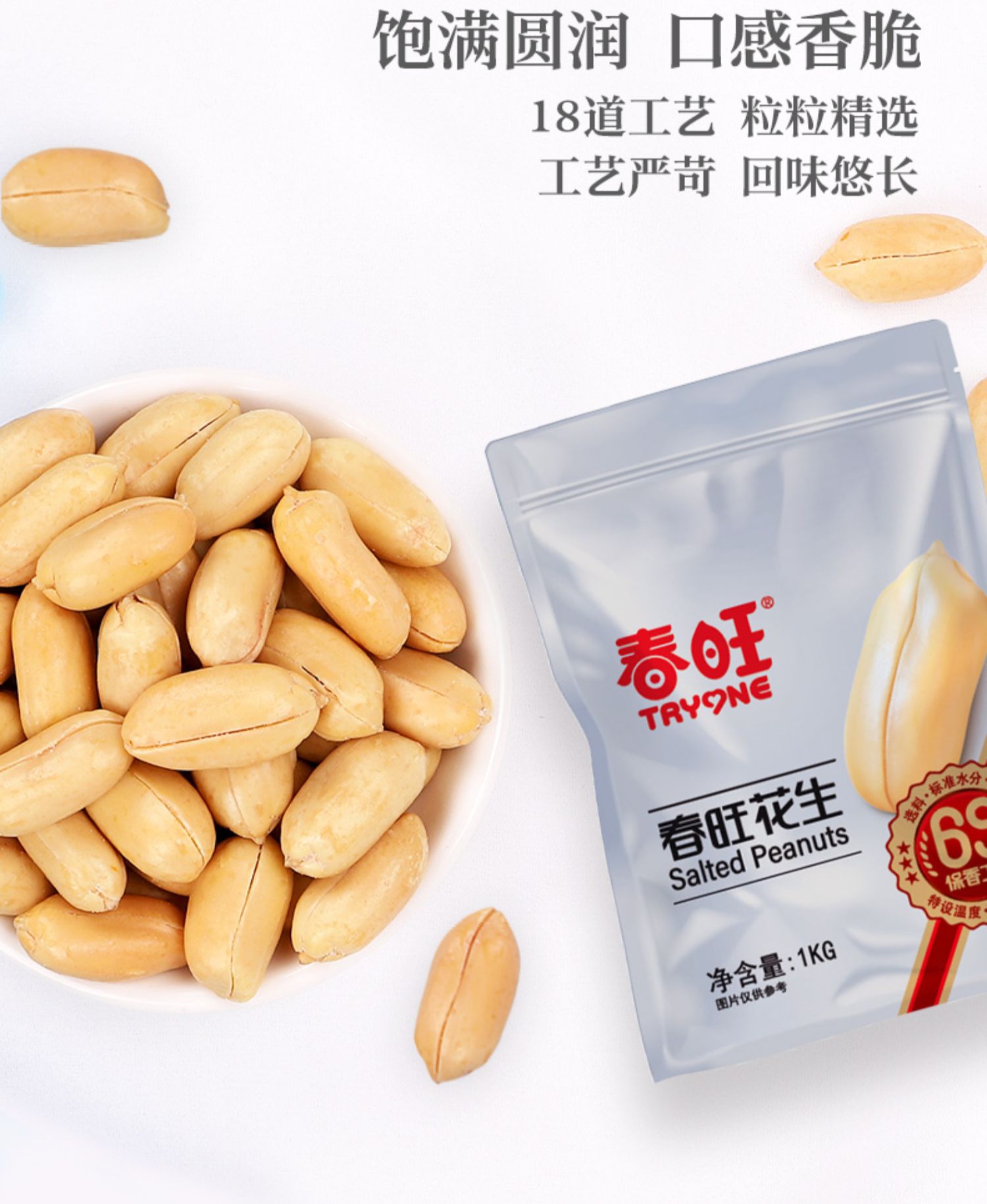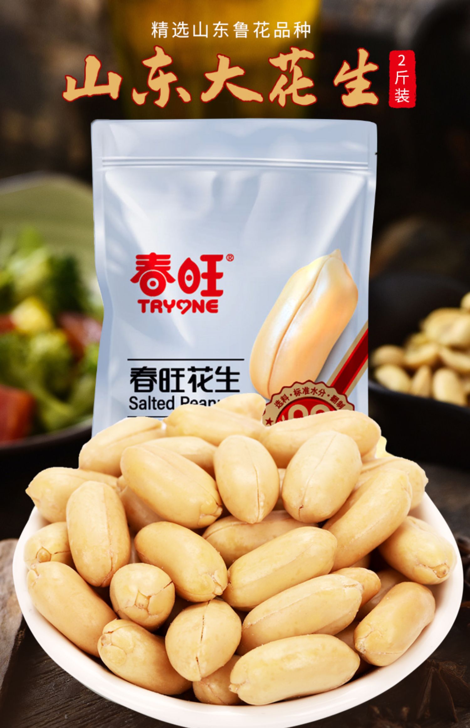 • 商品名称:春旺袋装花生1000g咸味盐焗花生米下酒菜2斤山东特产官方旗舰店