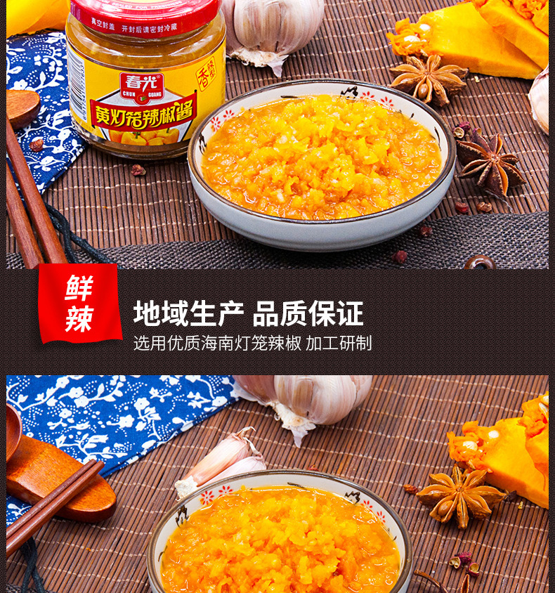 春光食品海南特产传统黄灯笼辣椒酱100g*3剁椒酱蒜蓉酱鲜香辣椒酱