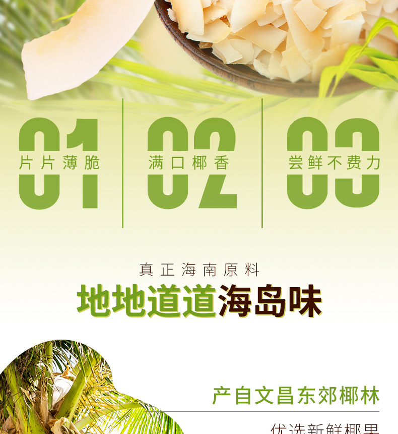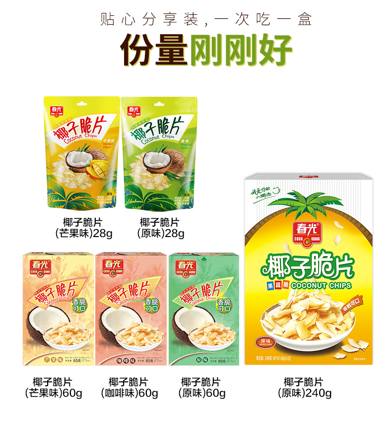 • 商品名称:春光海南特产椰子脆片60g*5烘烤椰子肉片干食品小吃休闲零食