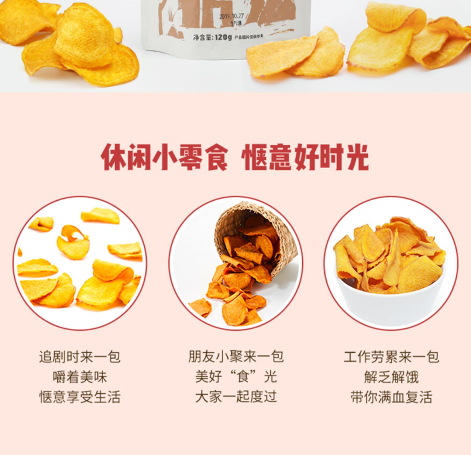 • 商品名称:【百果园干货猩球】香酥红薯片袋装120g休闲零食无添加地瓜片香脆