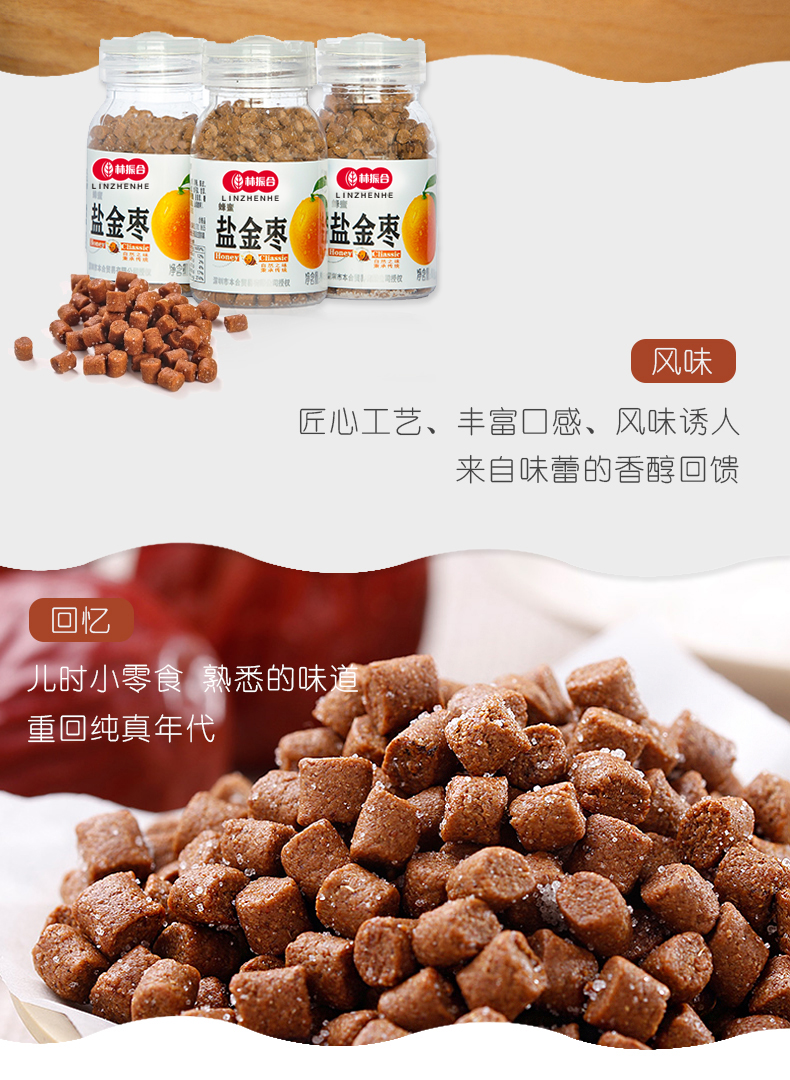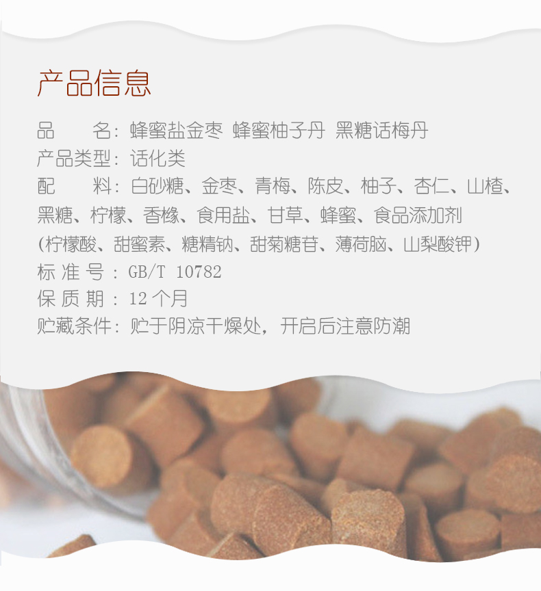 • 商品名称:【拍1发4】蜂蜜盐津枣话梅柚子丹童年怀旧老鼠屎猴王丹零食