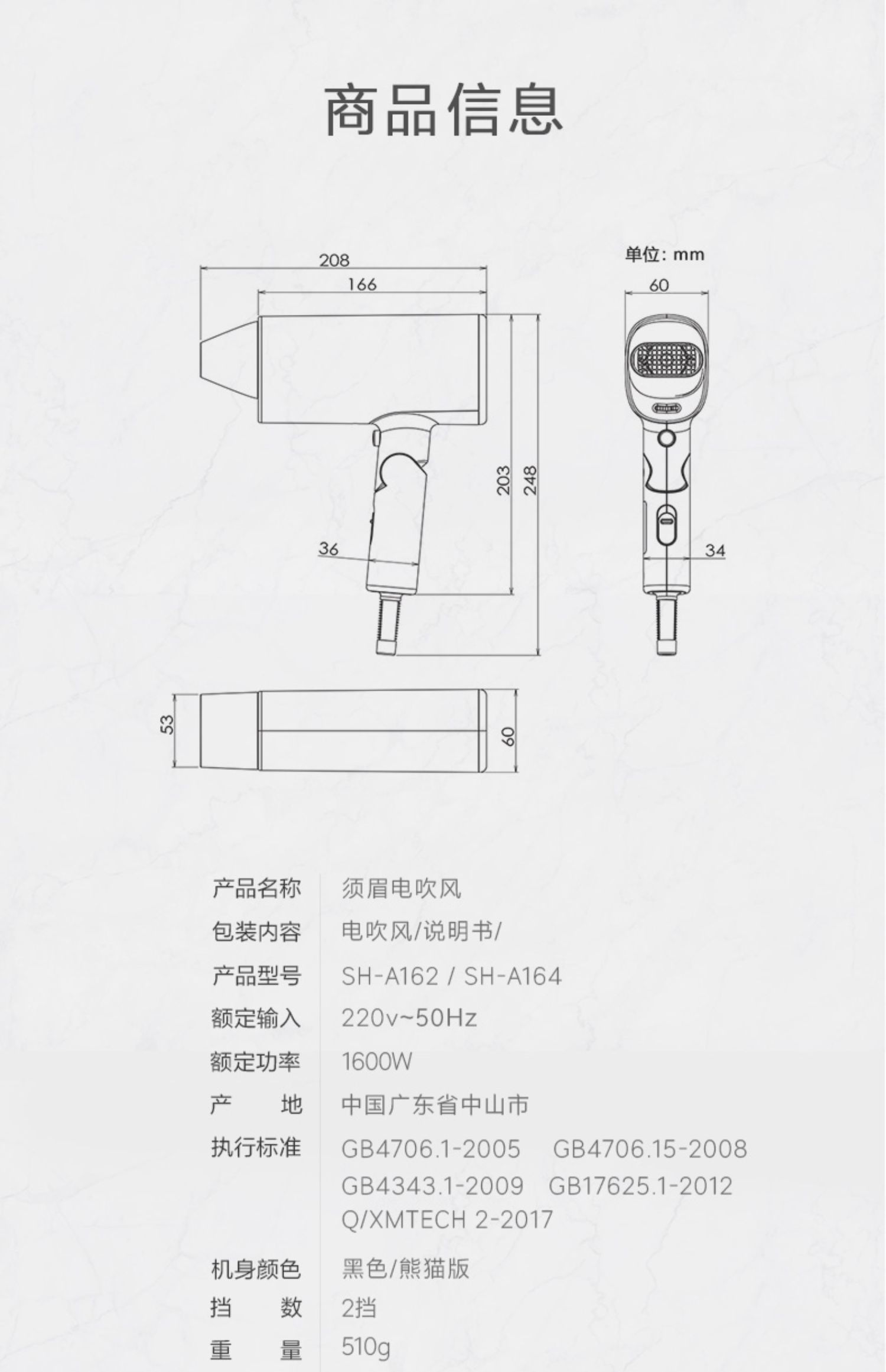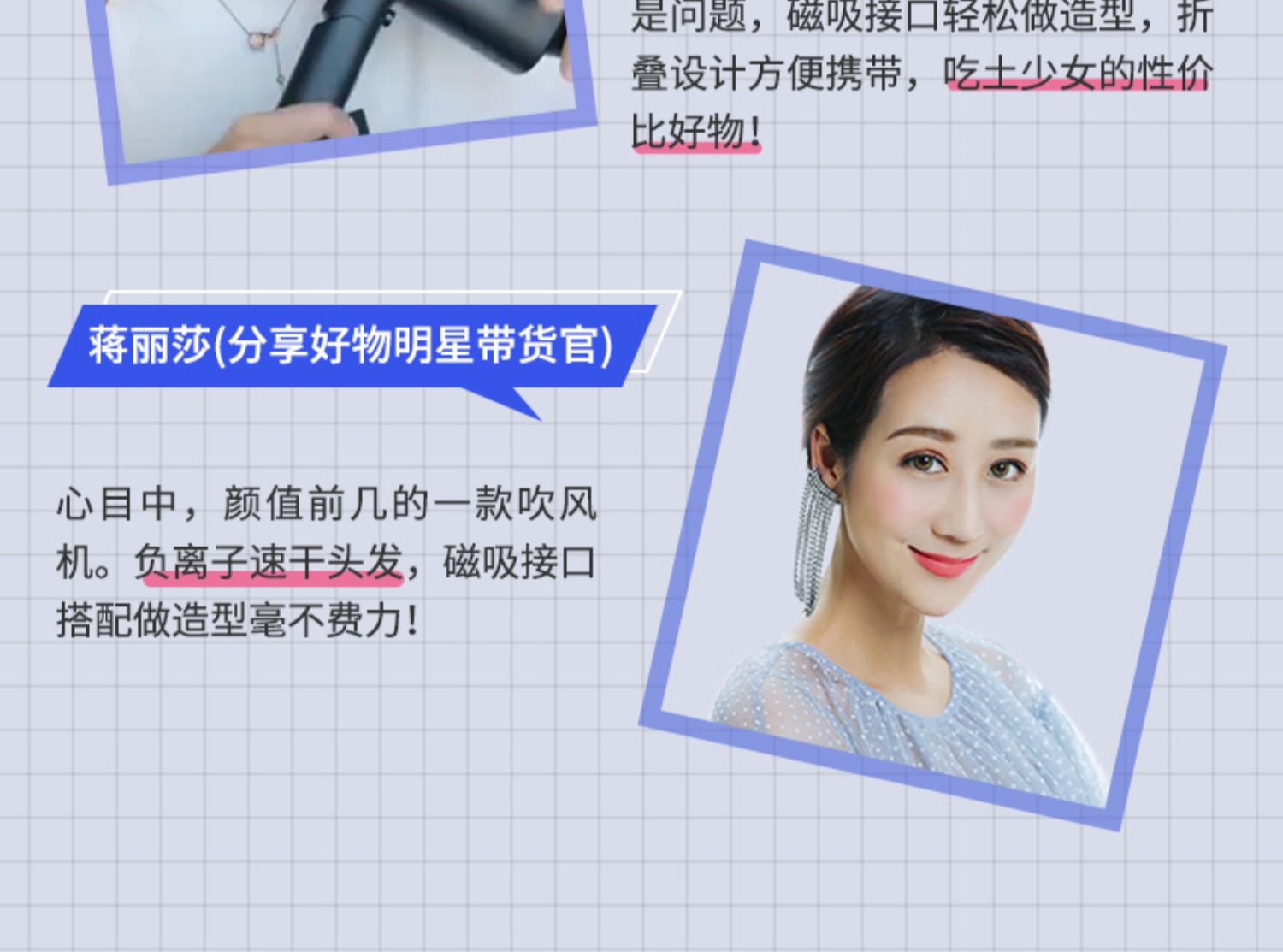 • 商品名称:须眉电吹风家用负离子护发吹风机折叠便携大功率发廊女生吹风筒