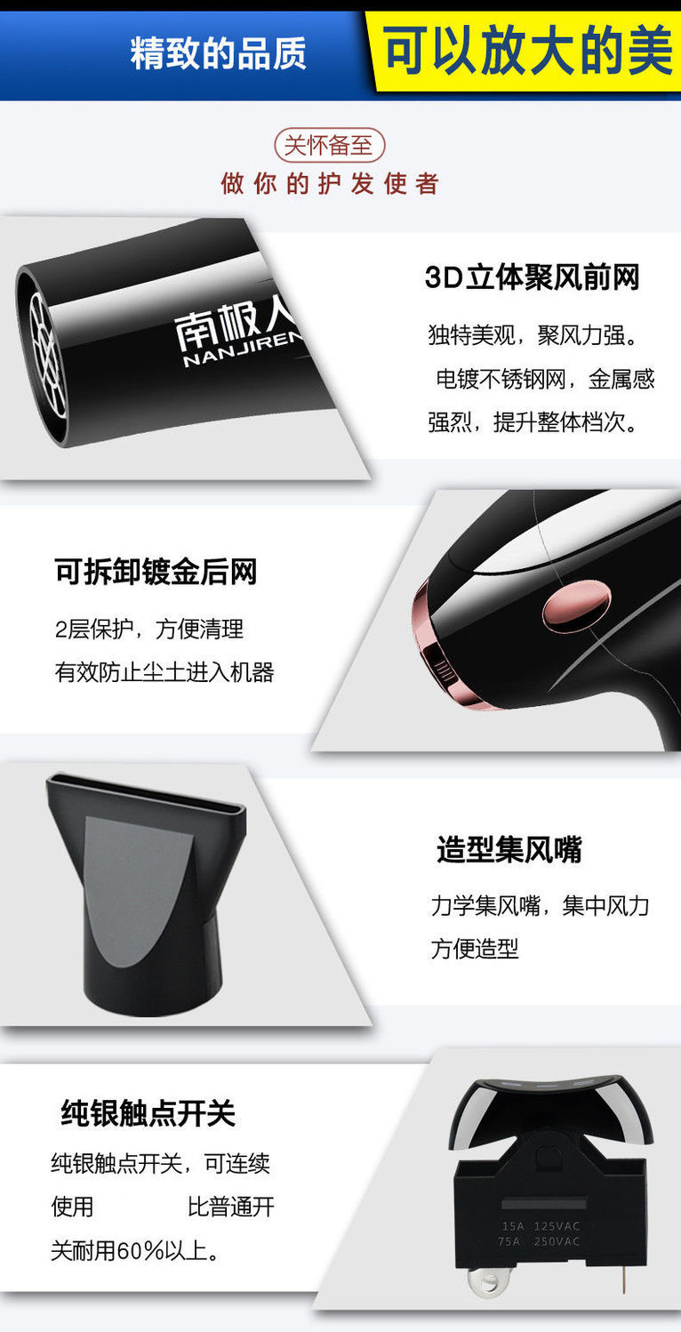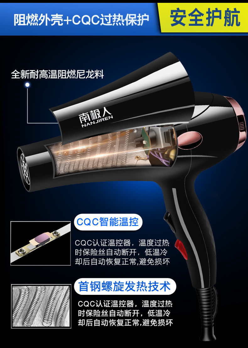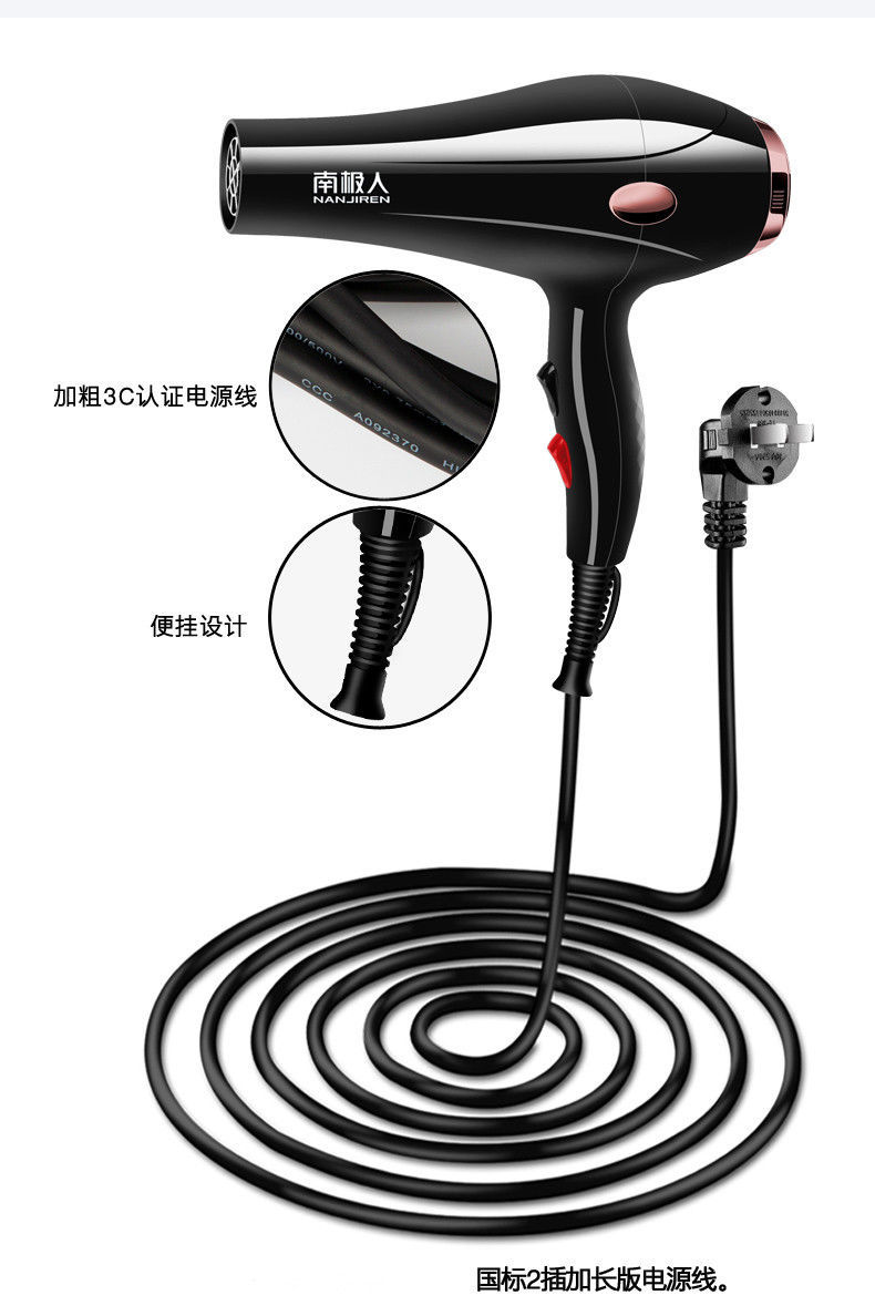• 商品名称:南极人吹风机家用理发店不伤发大功率发廊电吹风筒专业冷热风静音