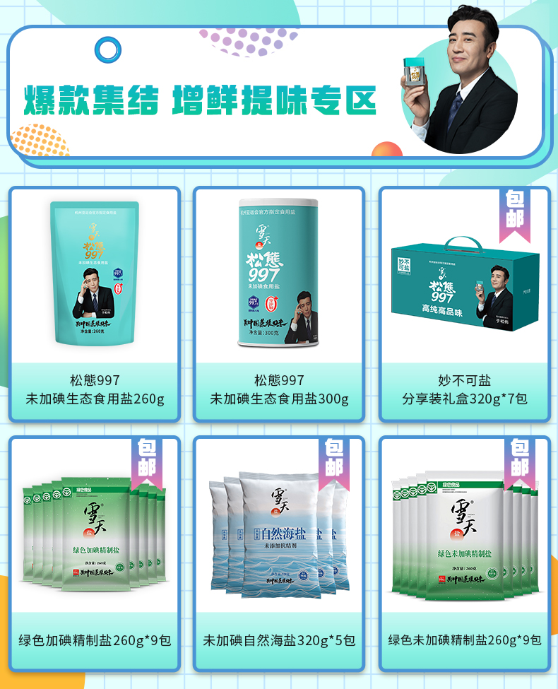 • 商品名称:A包邮商品雪天食盐未加碘精制盐260g*9包家用无碘深井细盐调料盐