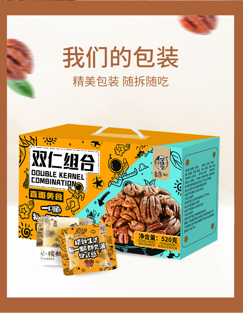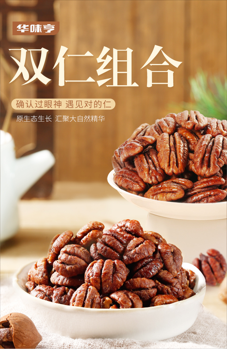 • 商品名称:【主播推荐】华味亨520g双仁小核桃仁/碧根果仁坚果大颗粒核桃肉