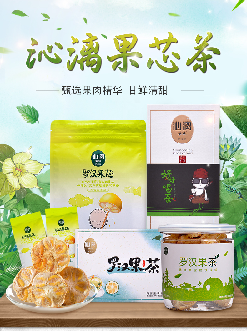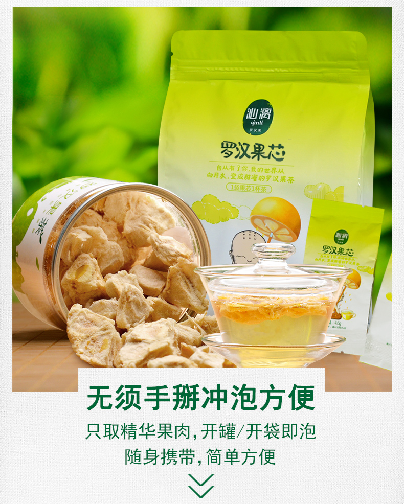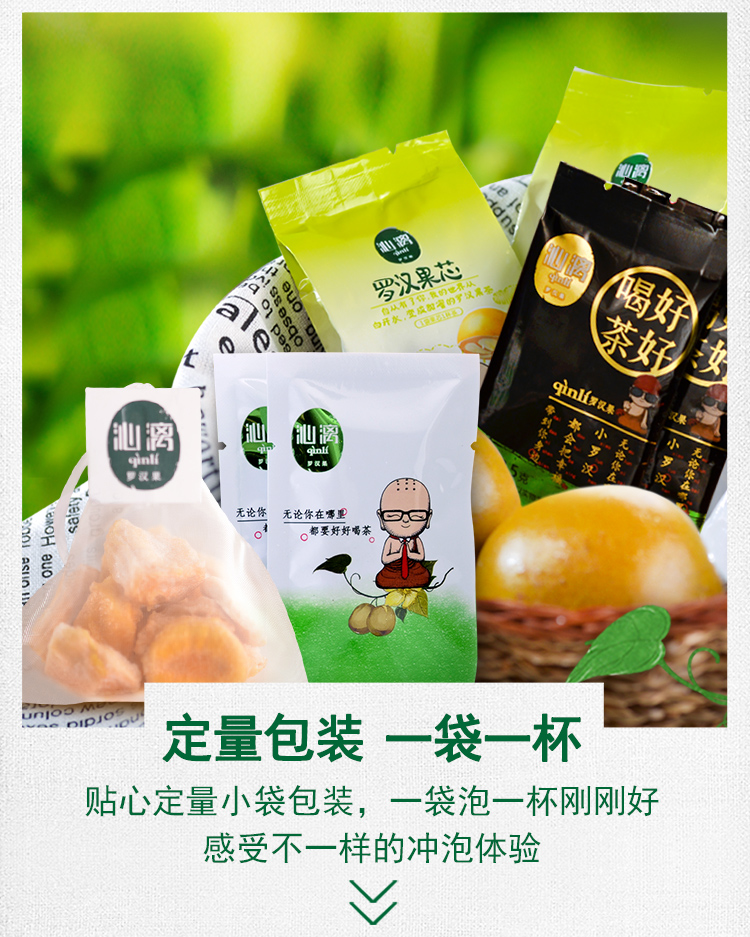 • 商品名称:沁漓桂林罗汉果芯茶小包装茶包低温脱水罗汉果干果泡茶果仁心肉片