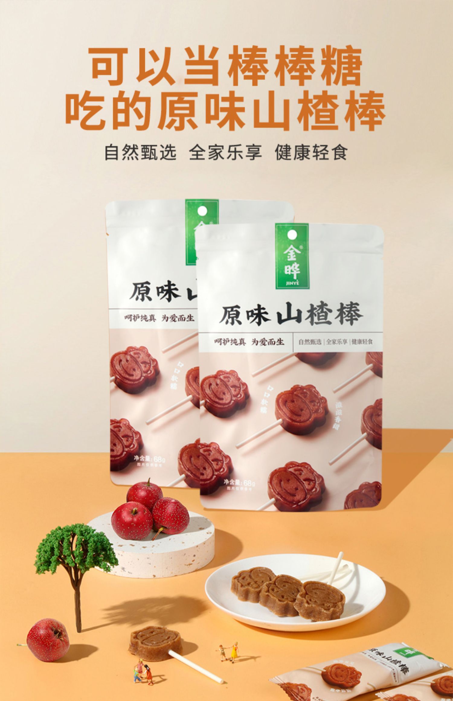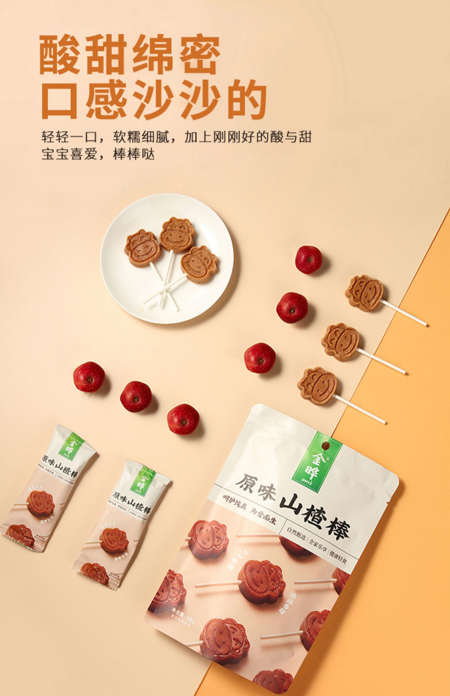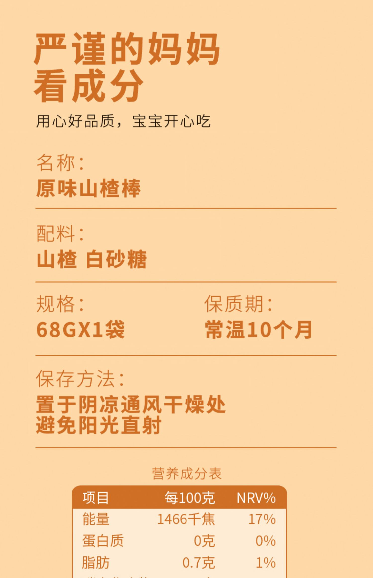 • 商品名称:金晔小牛山楂棒棒糖休闲食品零食蜜饯果脯原味山楂棒68gx1袋