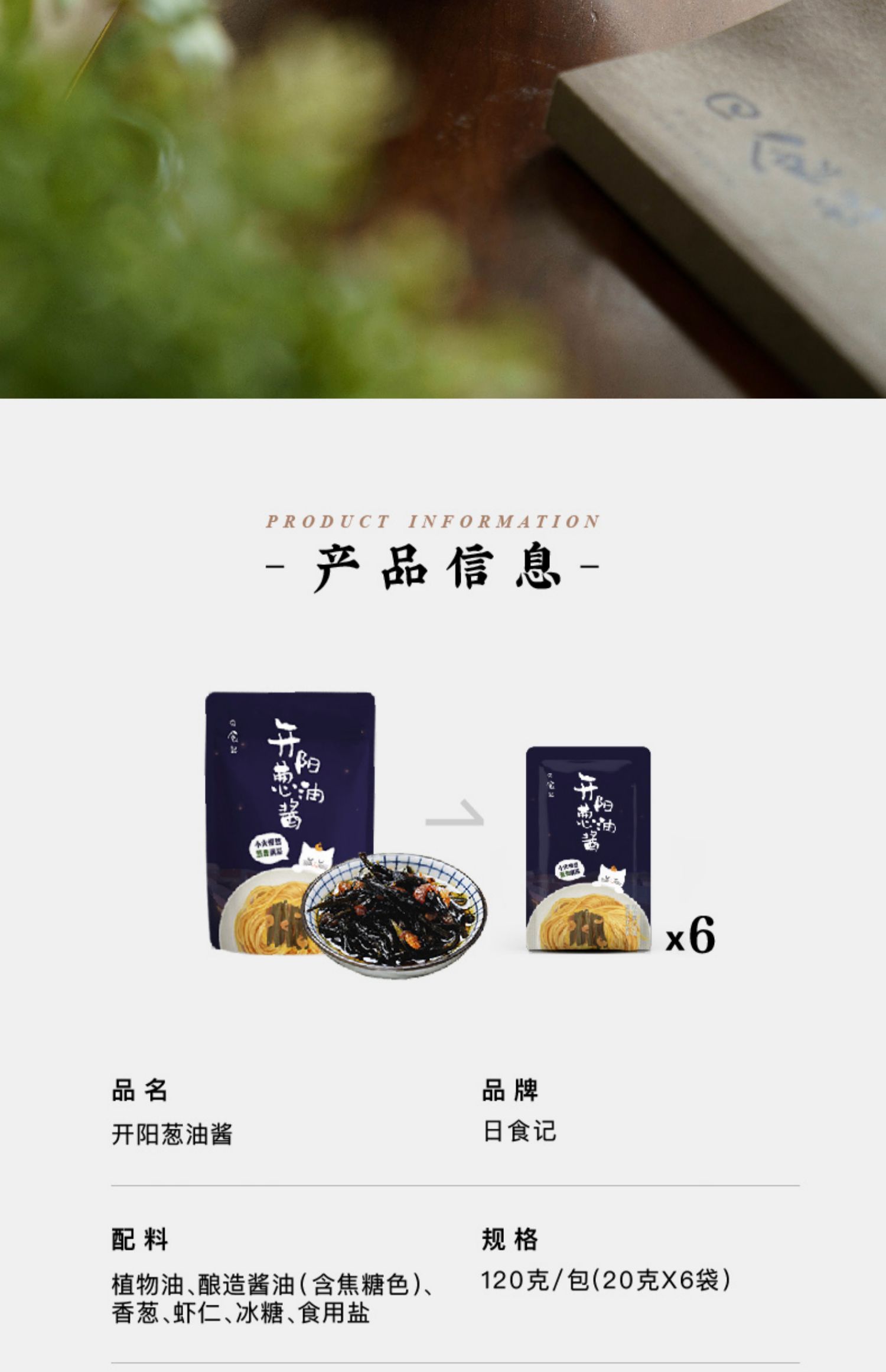 • 商品名称:日食记开阳上海葱油酱拌面拌饭酱调料酱包鲜香调料葱油面酱不含面