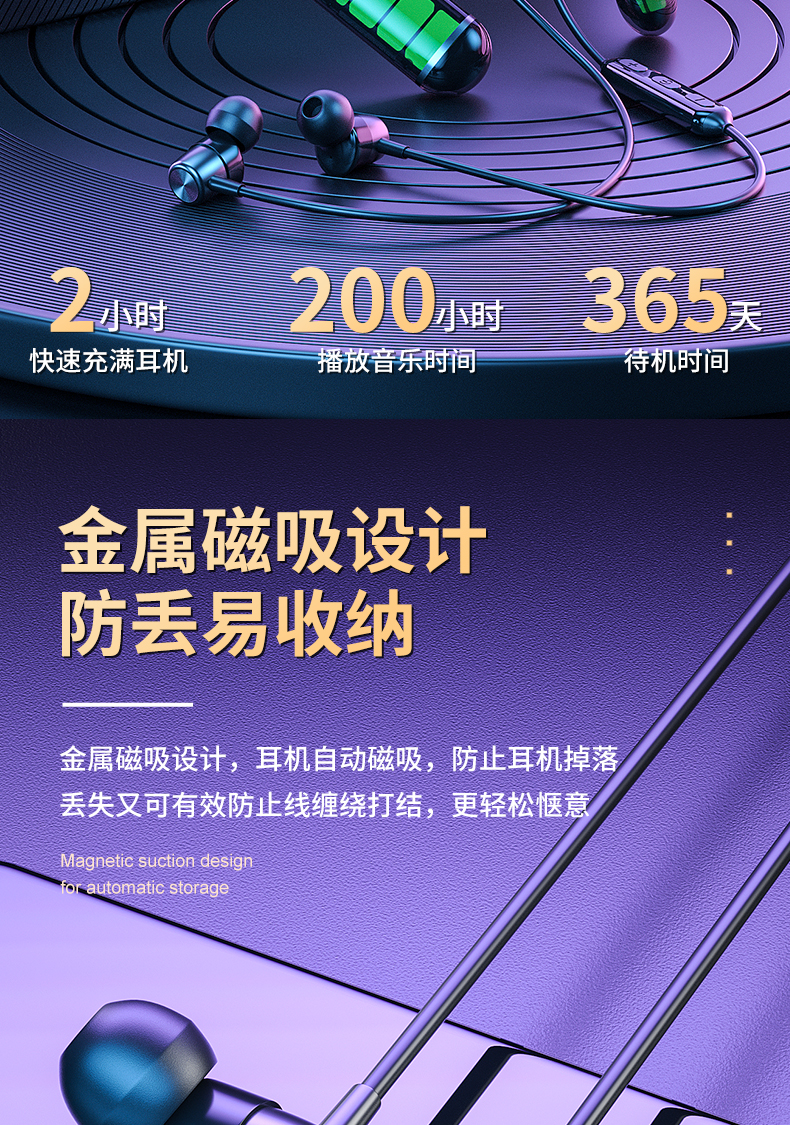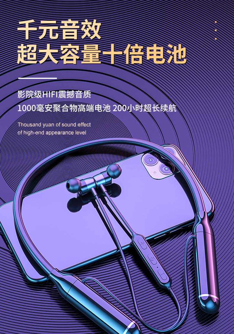 • 商品名称:200小时超长续航蓝牙耳机颈挂脖入耳式磁吸降噪2021年新款游戏运动型官方正品华为苹果小米vivo山水联想适用.