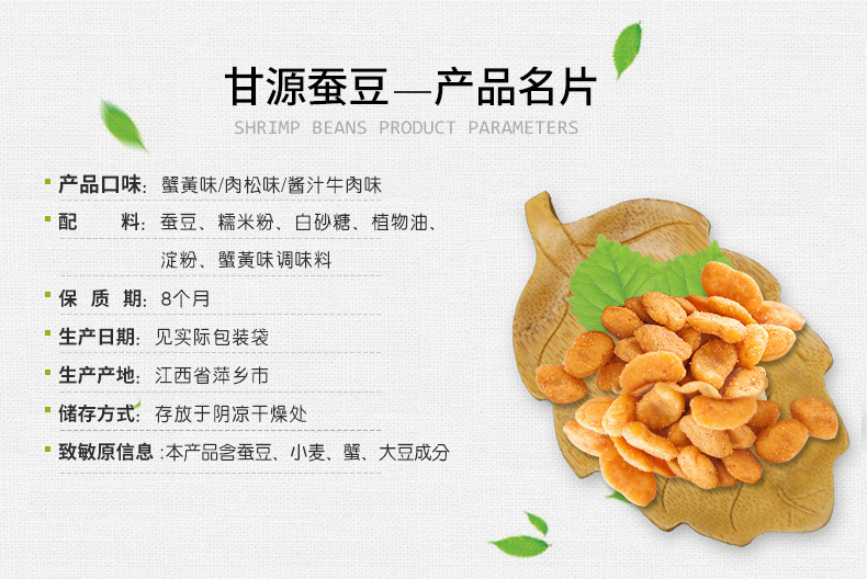 • 商品名称:甘源蟹黄味蚕豆零食小包装香辣牛肉兰花豆1000g散装小吃休闲食品