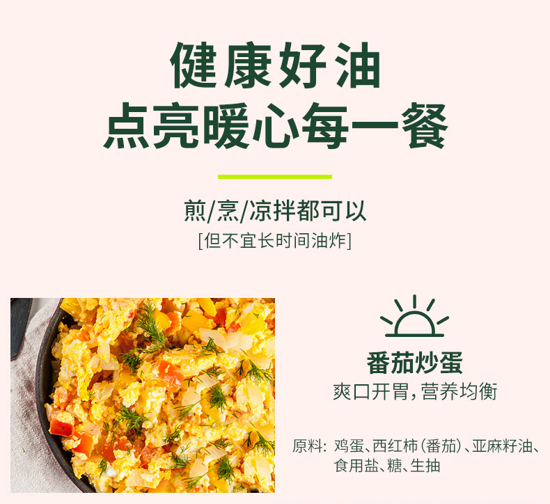 • 商品名称:格琳诺尔冷榨一级亚麻籽油1.8L/桶适合炒菜烹饪食用油商超同款