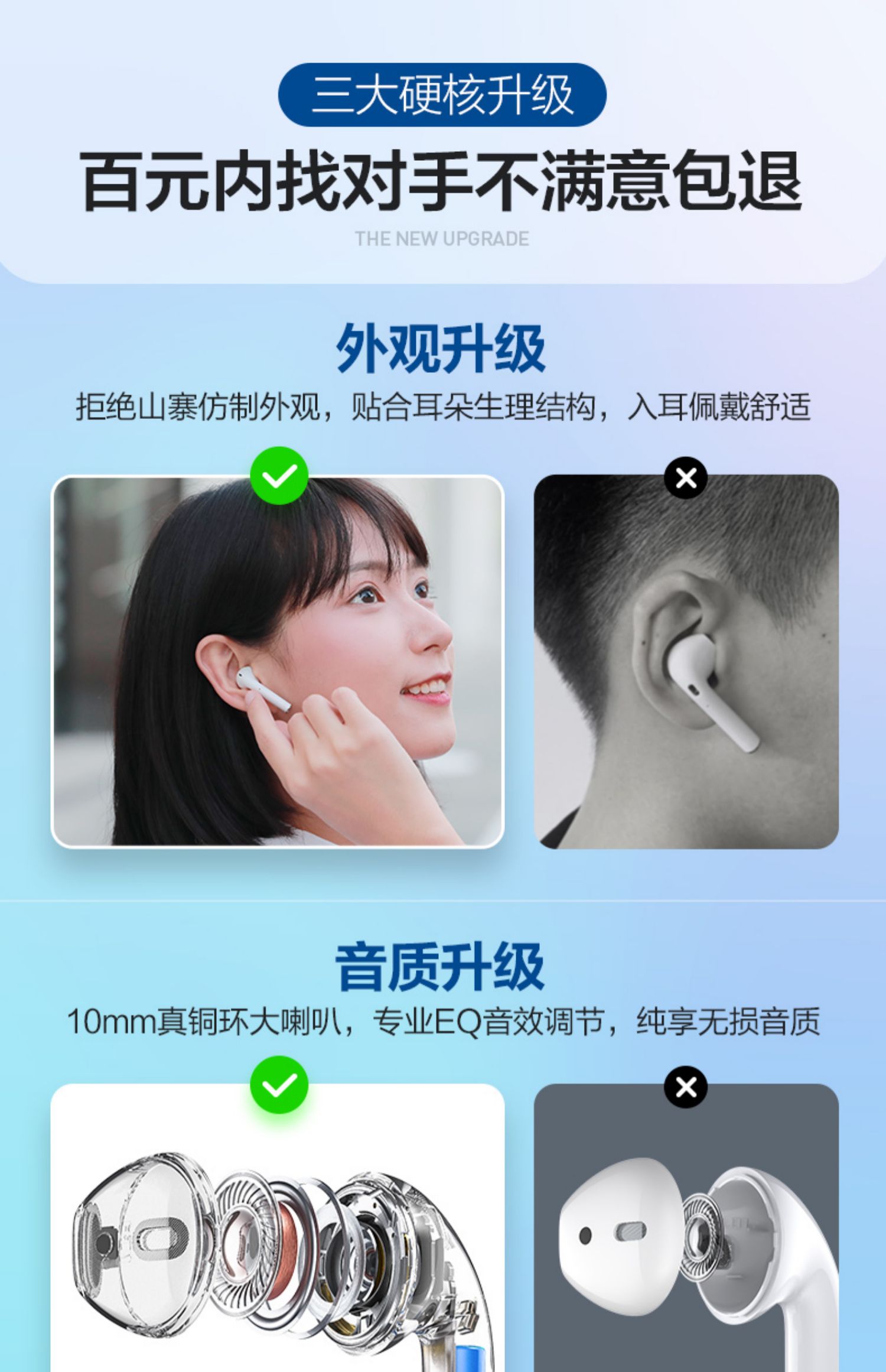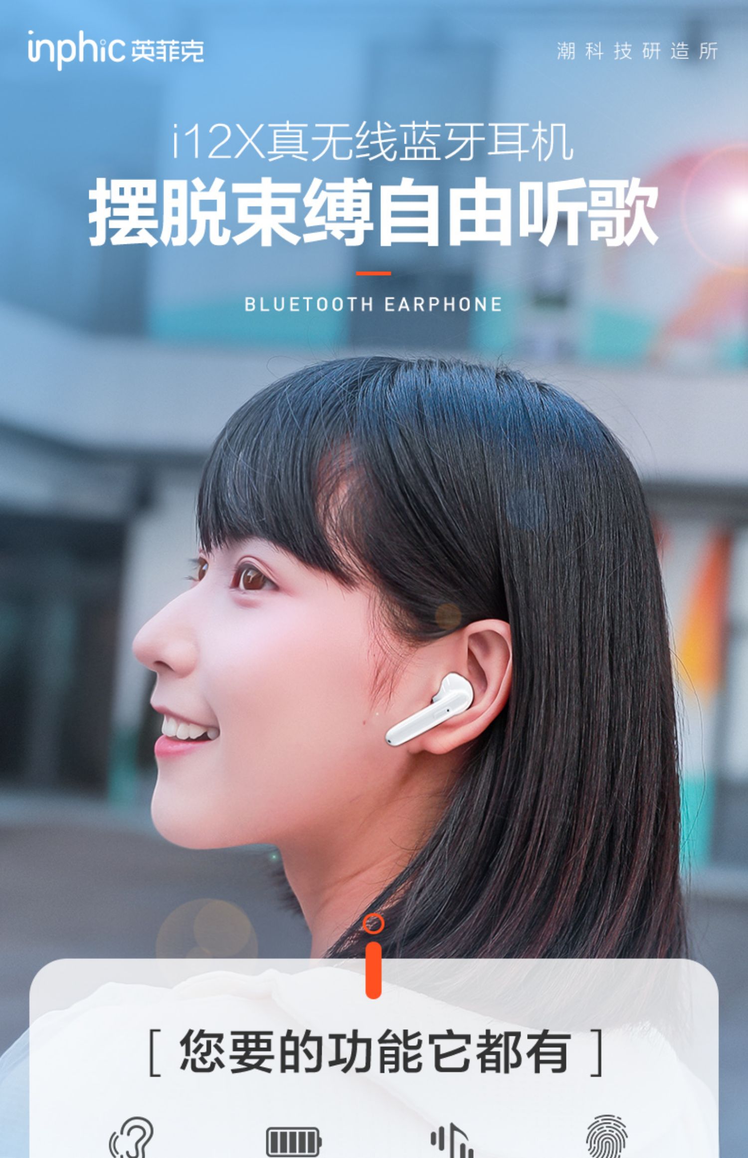 • 商品名称:英菲克i12x真无线蓝牙耳机2021年新款高端适用华为苹果oppo小米vivo超长续航typec充电运动女士男女生款可爱