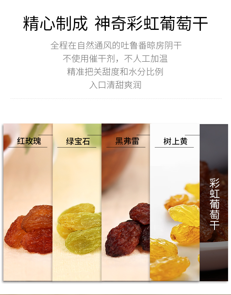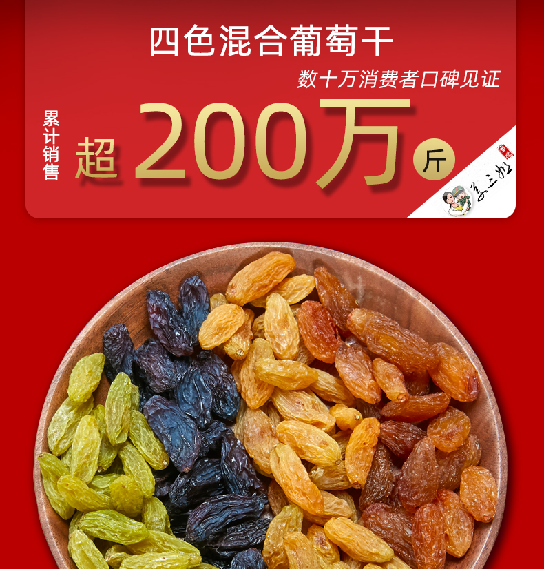 • 商品名称:新疆葡萄干独小包装散装5斤红绿黄黑葡萄干奶茶店烘焙酸奶专用