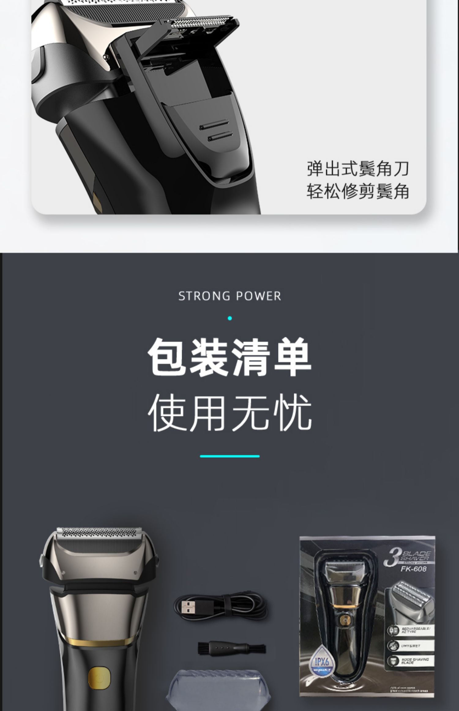 • 商品名称:德国剃须刀智能往复式电动男士胡须刀刮胡子全身水洗刮胡刀充电式