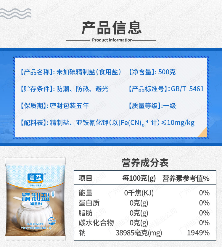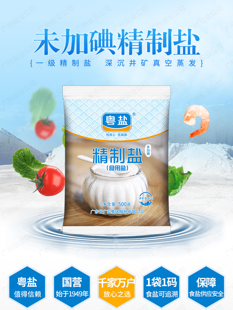 • 商品名称:粤盐无碘盐甲状腺专用不加碘食用盐正品家用食盐精制矿盐500g*5袋