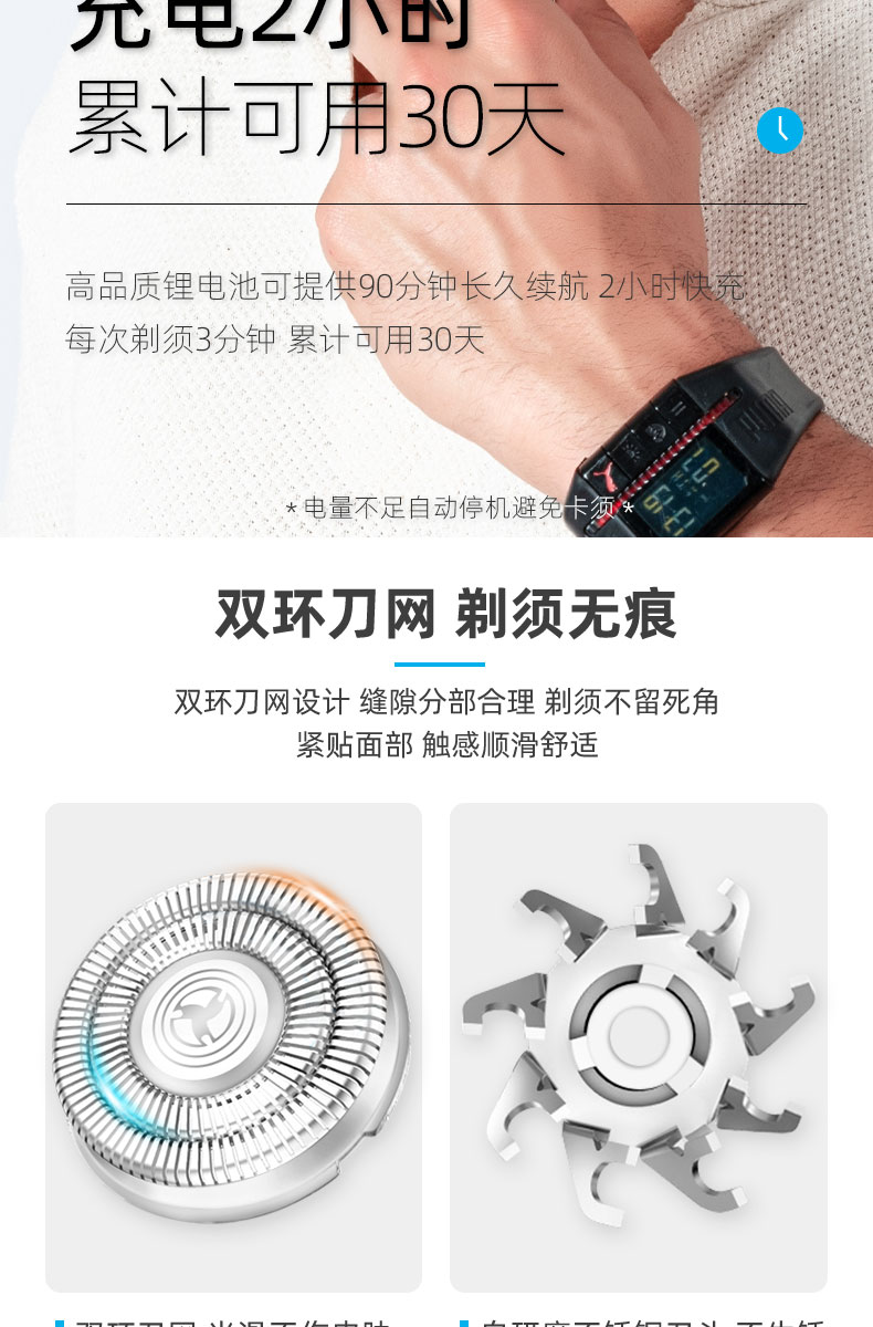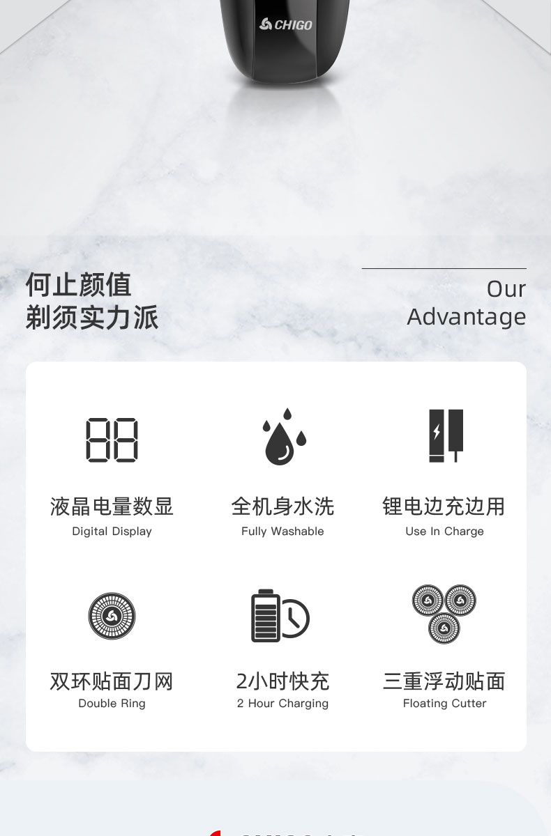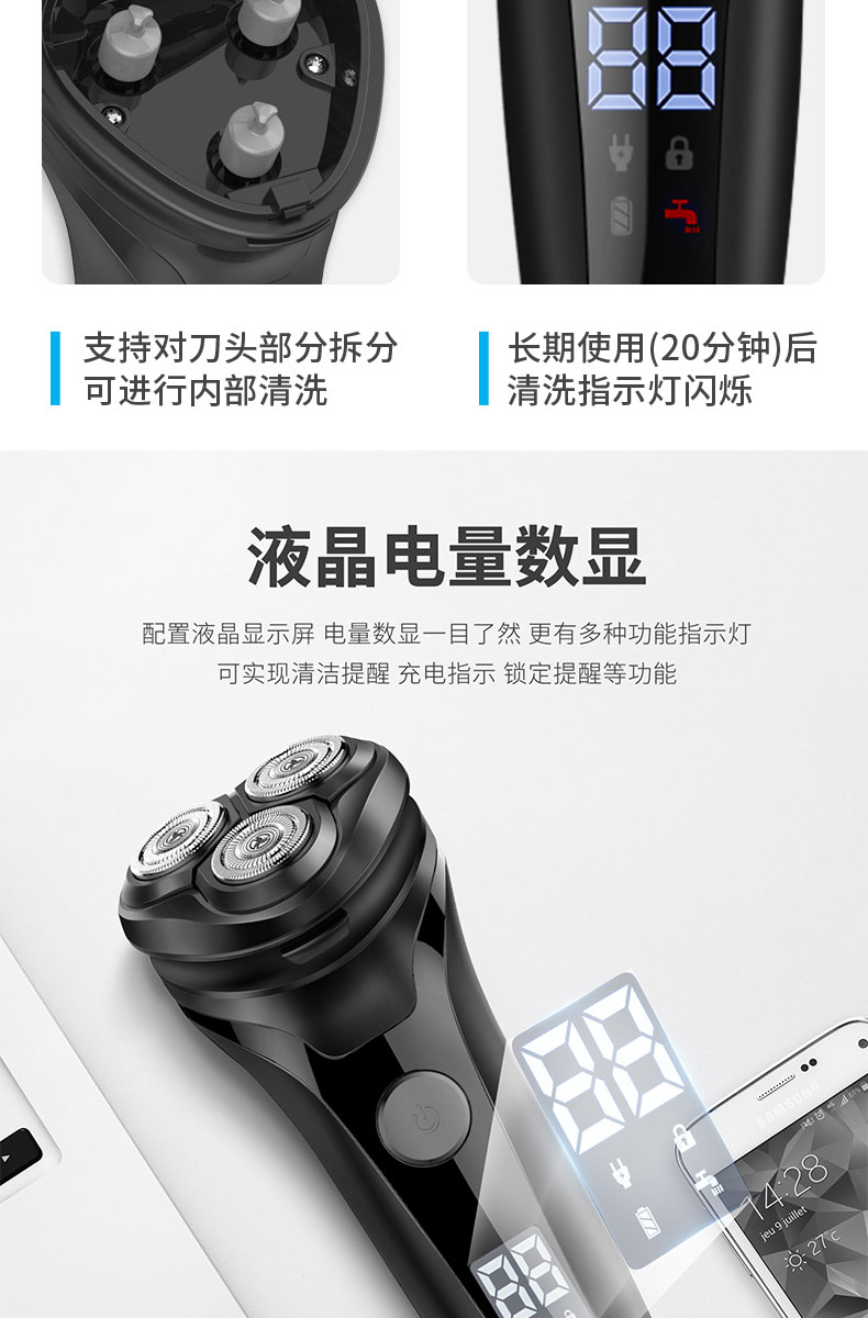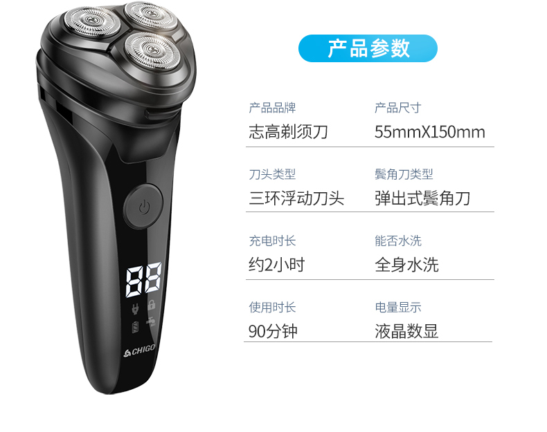 • 商品名称:志高剃须刀电动刮胡刀男士充电式须刨胡须刀全身水洗智能刮胡子刀
