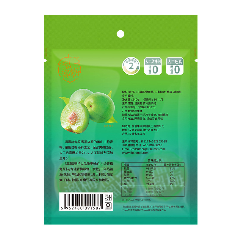 • 商品名称:【肖战推荐】溜溜梅脆青梅240g*3袋青梅果清脆爽口酸甜解腻蜜饯