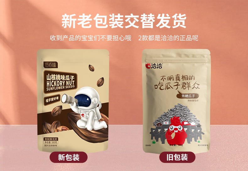 • 商品名称:洽洽焦糖味山核桃五香500g*3袋葵花籽仁瓜子恰恰炒货休闲零食批发