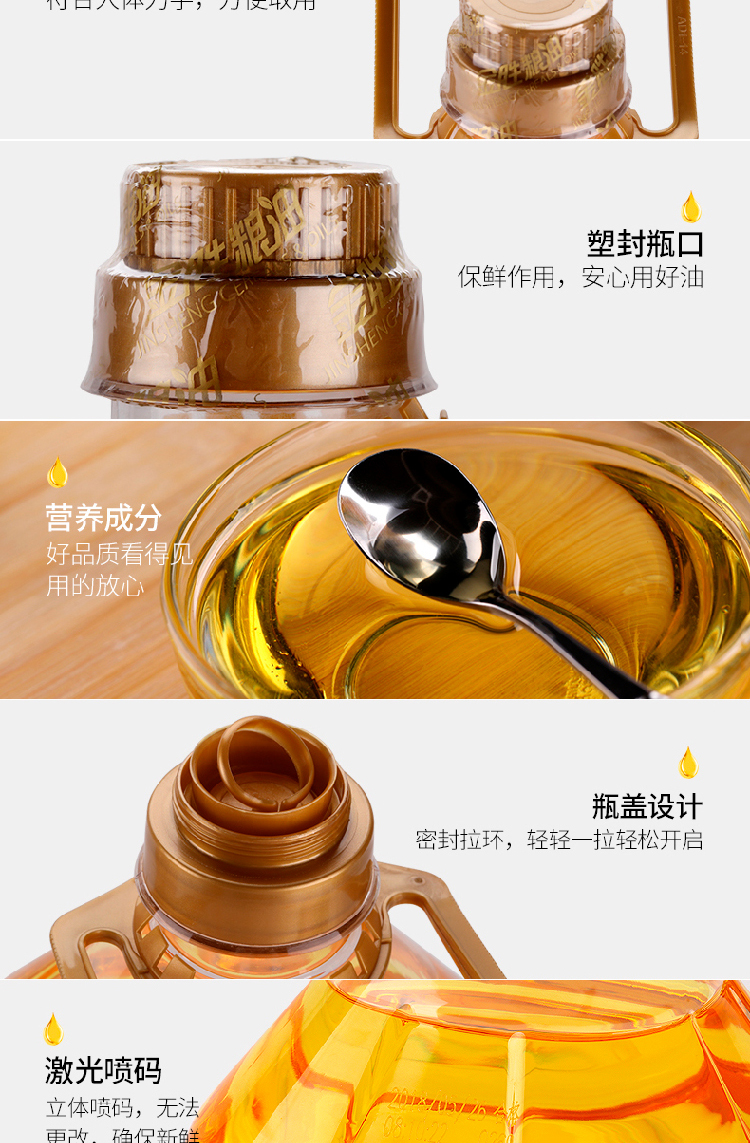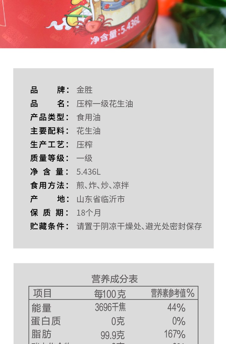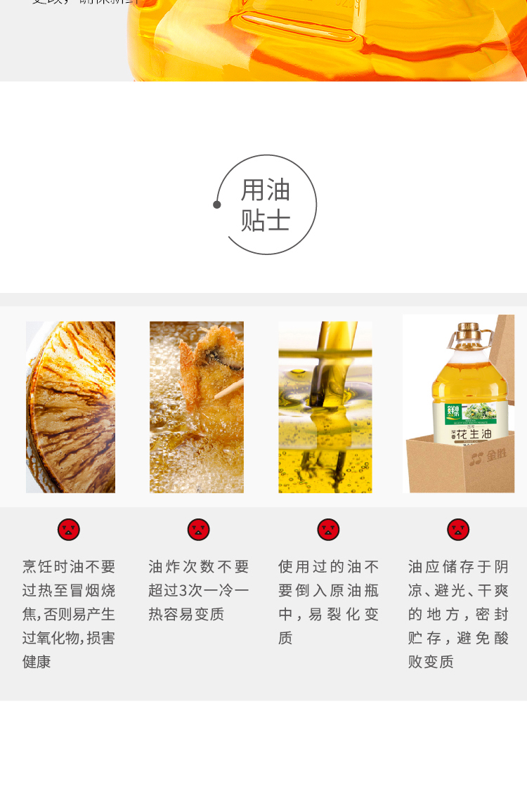 • 商品名称:金胜鲜油坊压榨一级地道浓香花生油5.436L/桶实惠家庭装