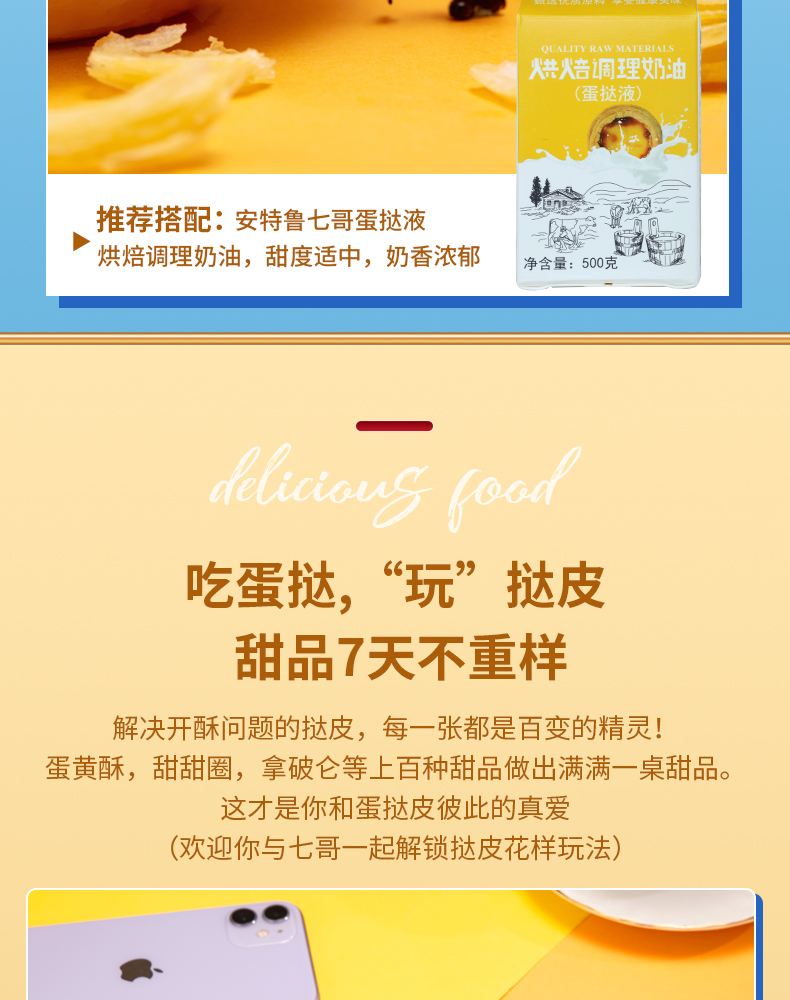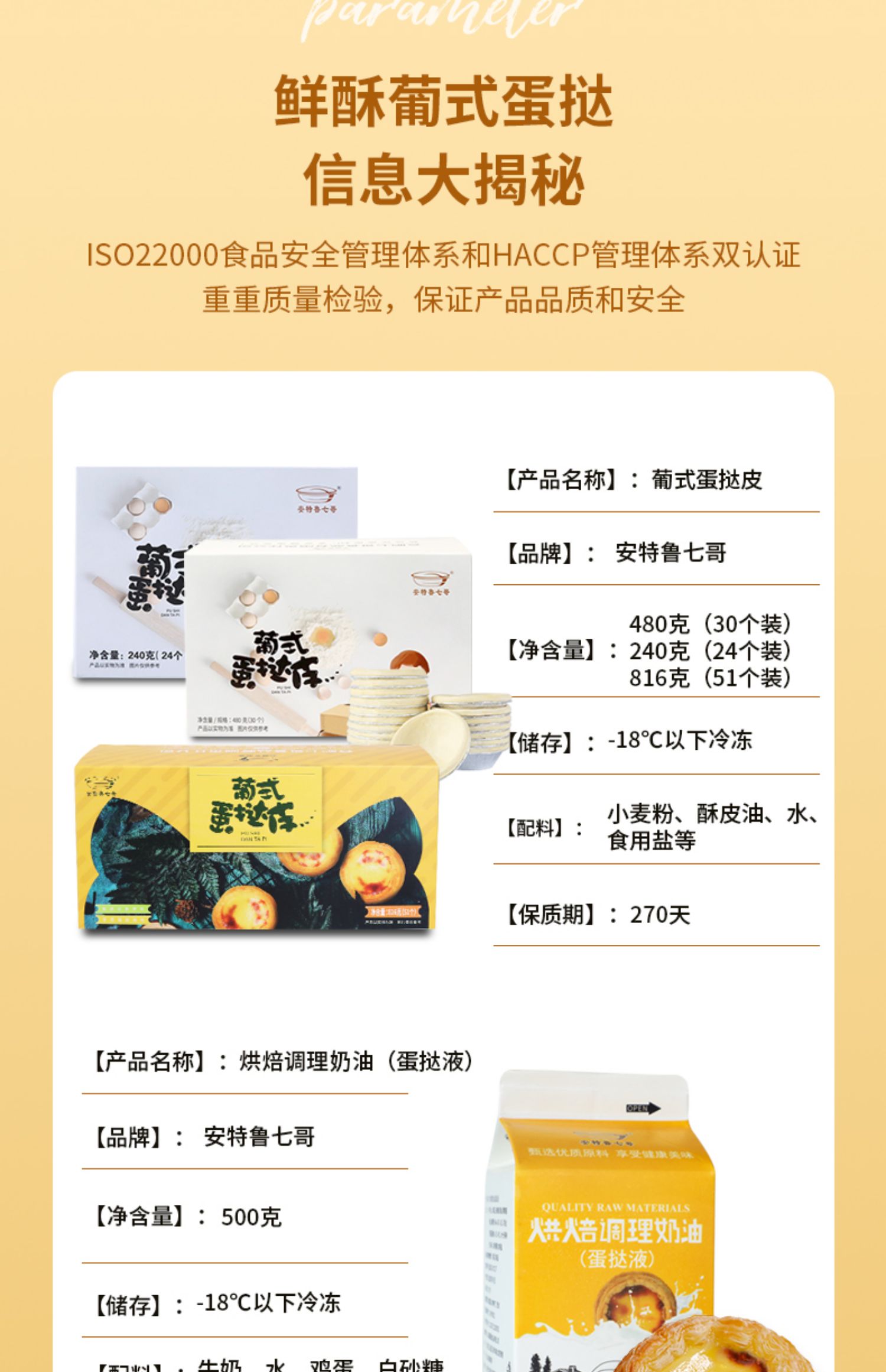 • 商品名称:安特鲁七哥 蛋挞皮葡式蛋挞皮烘焙家用蛋挞皮带锡底烘焙原料套装
