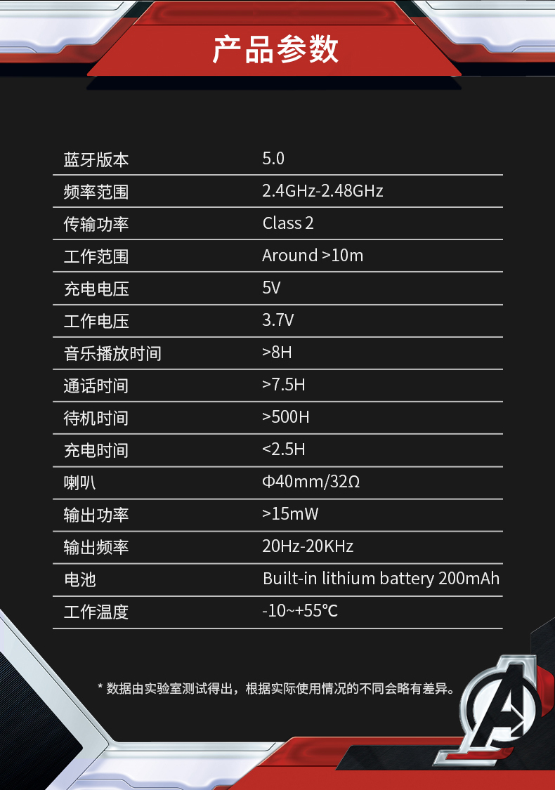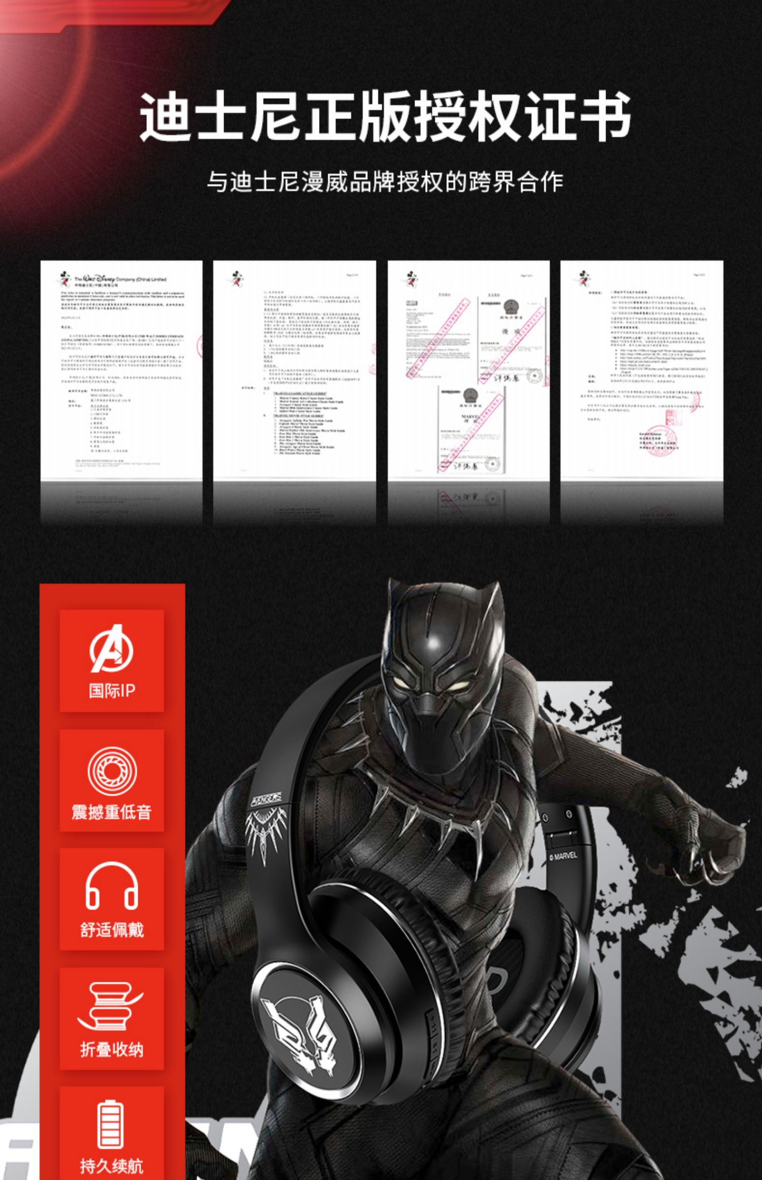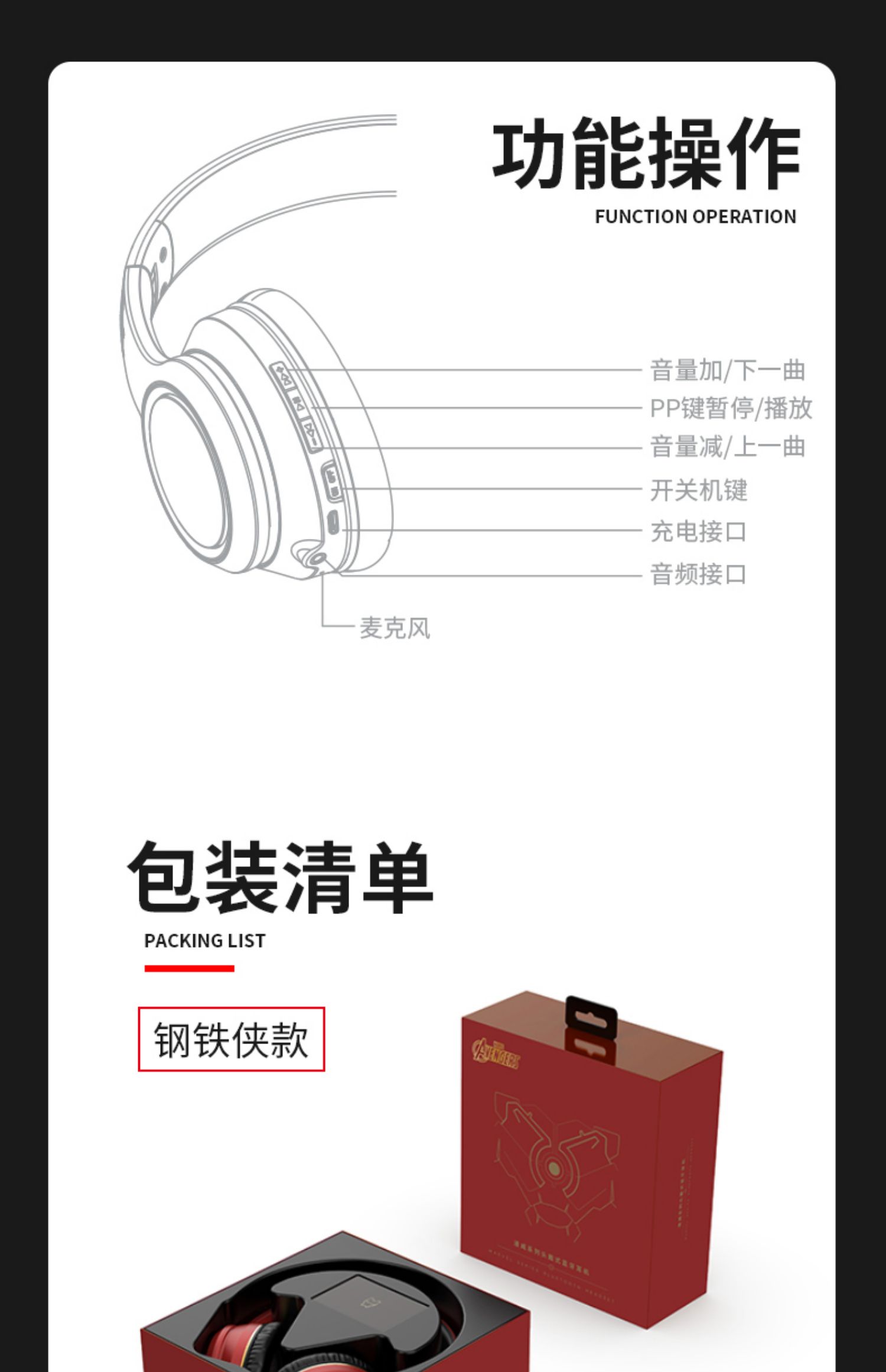• 商品名称:漫威联名钢铁侠蓝牙耳机头戴式重低音降噪游戏苹果安卓通用超