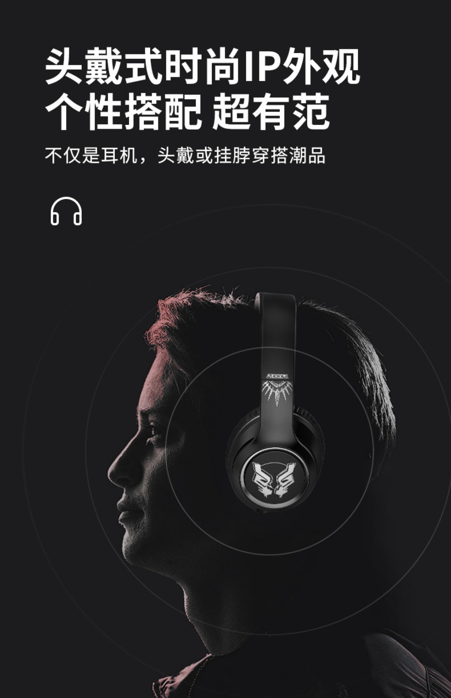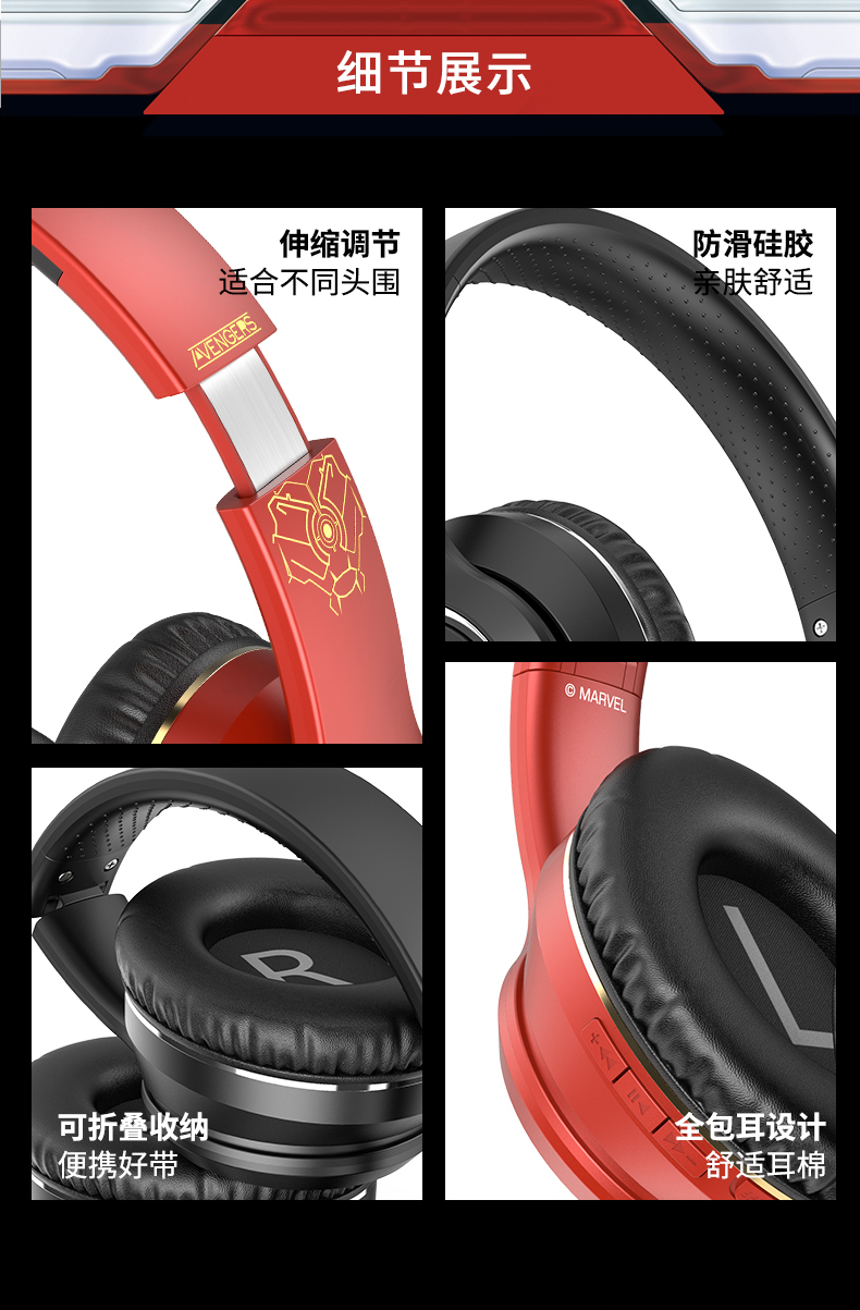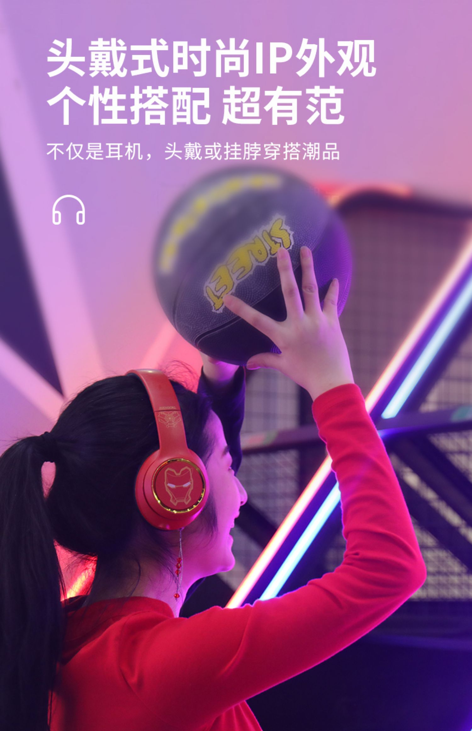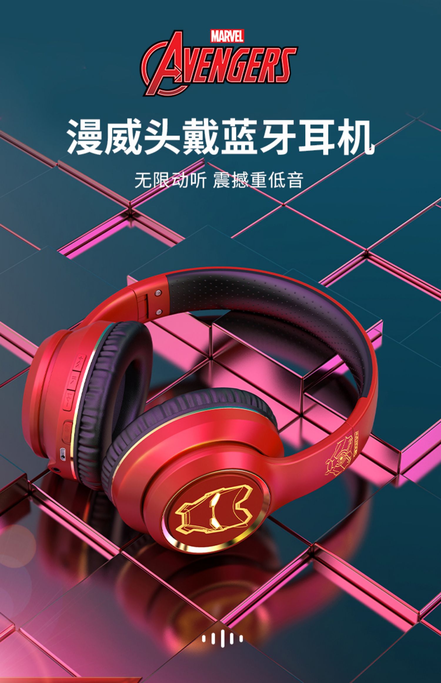 漫威联名钢铁侠蓝牙耳机头戴式重低音降噪游戏苹果安卓通用超