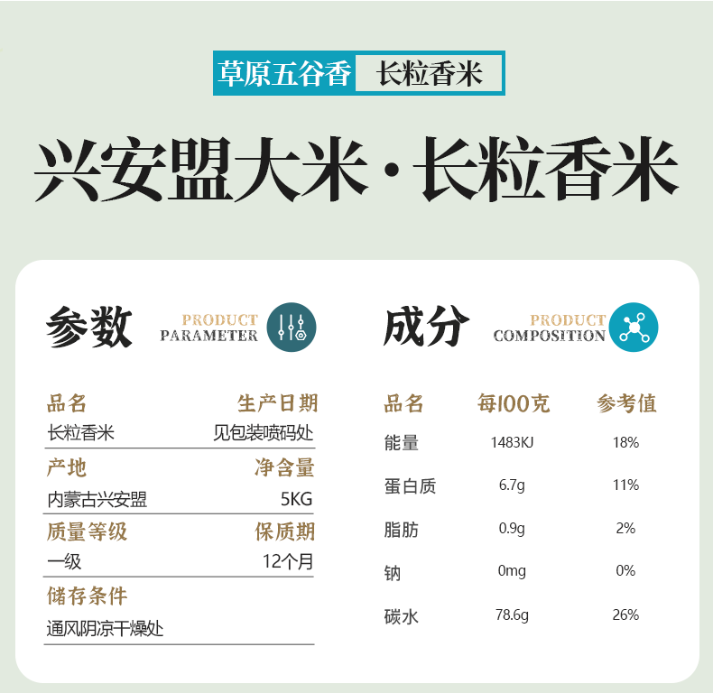 • 商品名称:内蒙古草原长粒香米今年新米东北大米兴安盟一级粳米10斤家常5kg