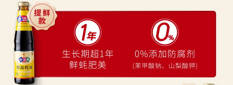 • 商品名称:【百亿补贴】欣和味达美醇品蚝油510g*3瓶 0添加防腐剂 YT