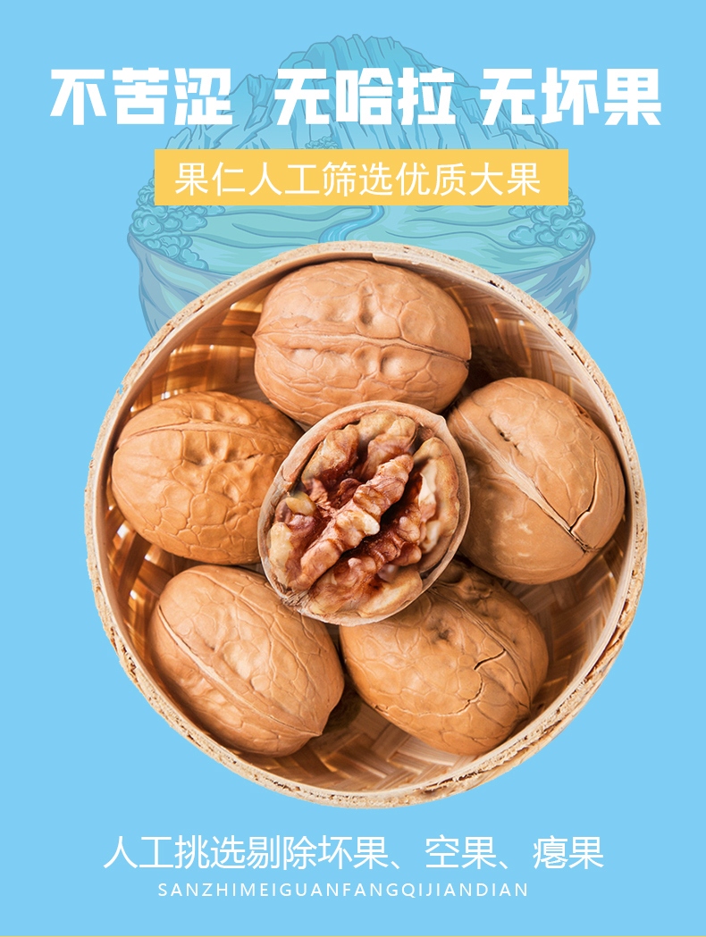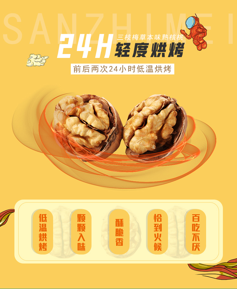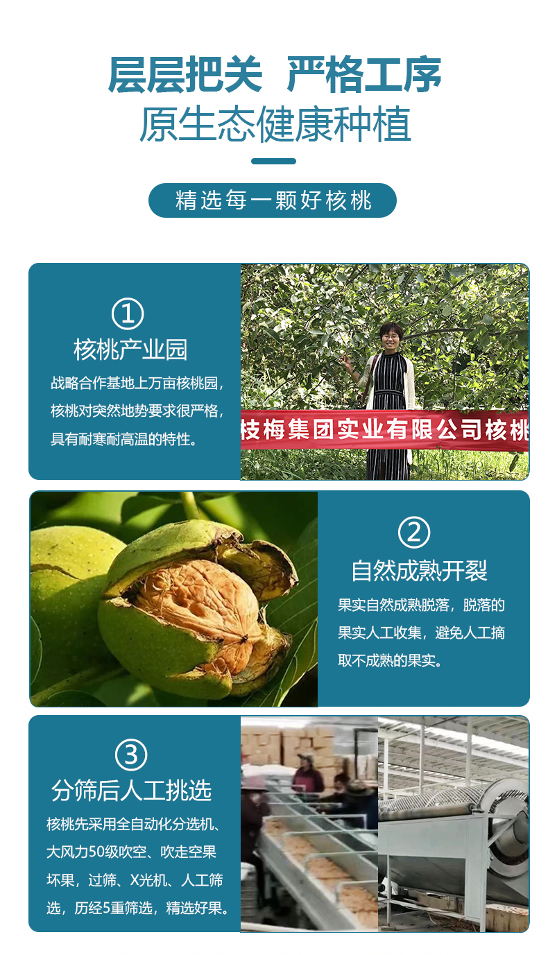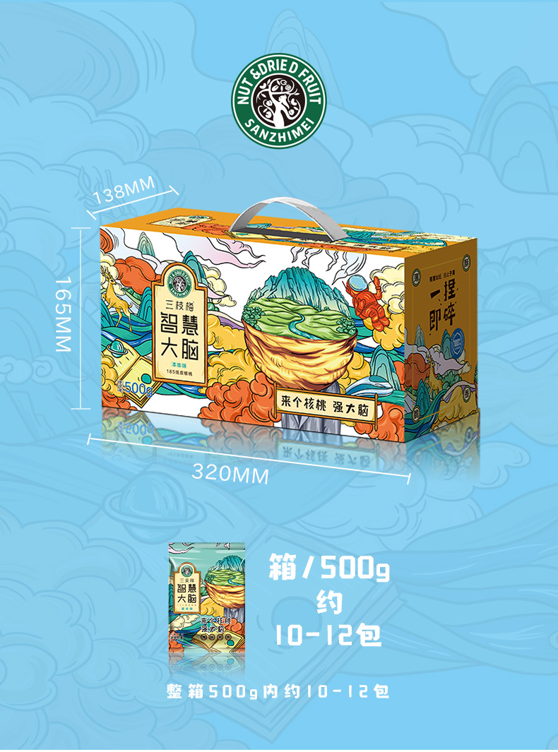 • 商品名称:三枝梅草本味185纸皮核桃熟核桃500g礼盒薄皮烤核桃礼盒坚果零食