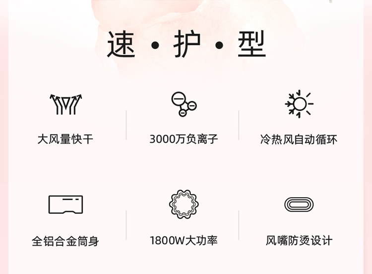 • 商品名称:素士负离子护发电吹风机大功率风力速干吹风筒家用宿舍用学生女士