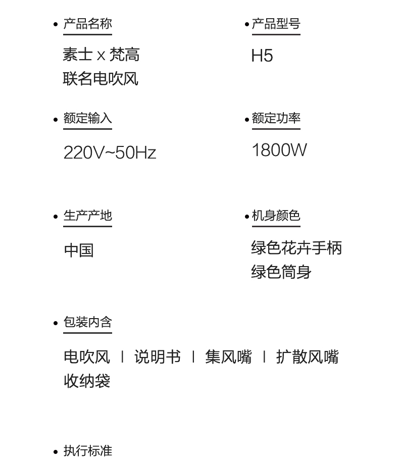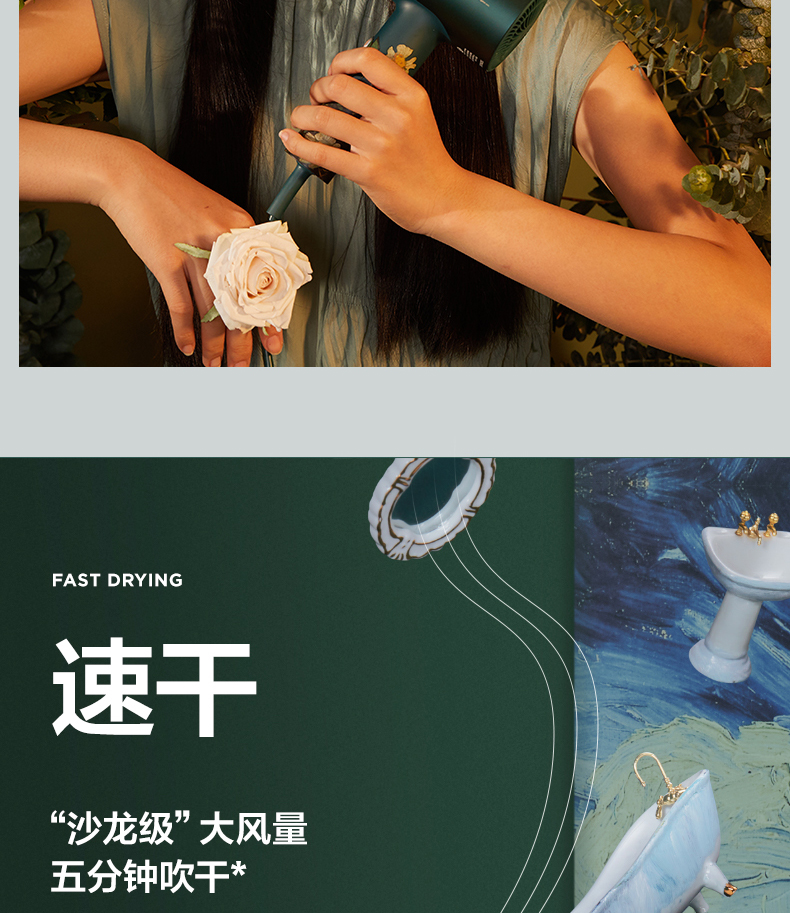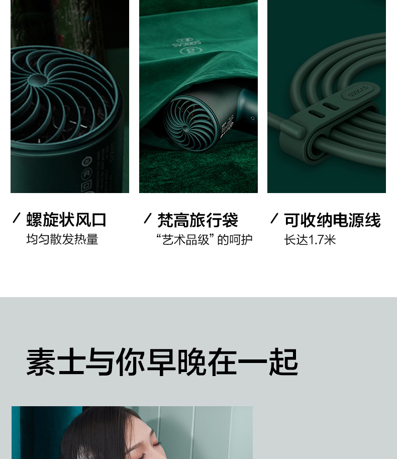 • 商品名称:素士电吹风机家用2021新款大功率宿舍用负离子护发速干梵高吹风筒