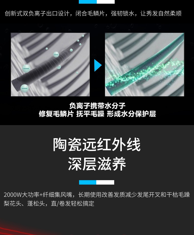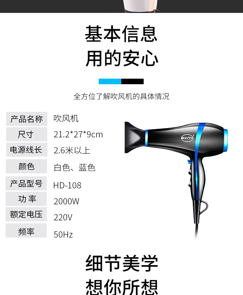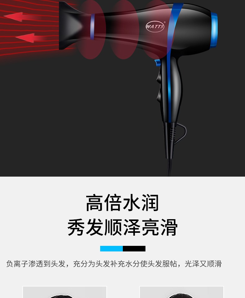 • 商品名称:WATTS电吹风机家用发廊专业负离子大功率恒温冷热风电吹风筒