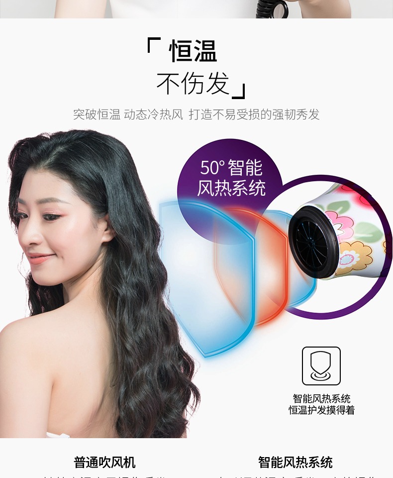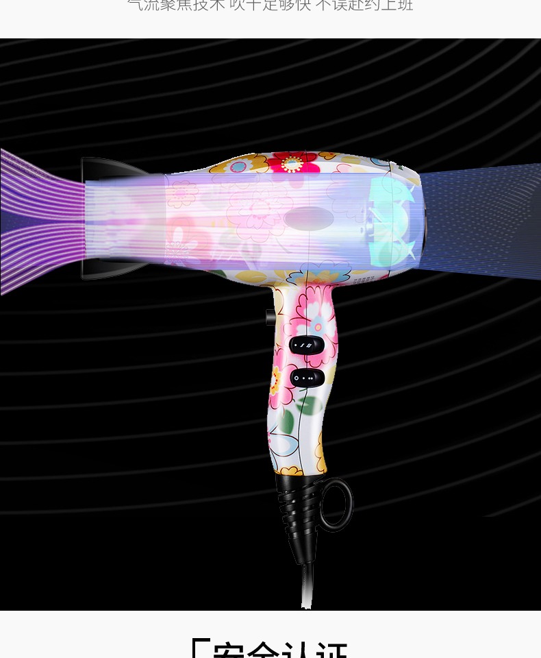 • 商品名称:WATTS强劲风力负离子红外护发家居酒店旅拍无静电不分叉电吹风机